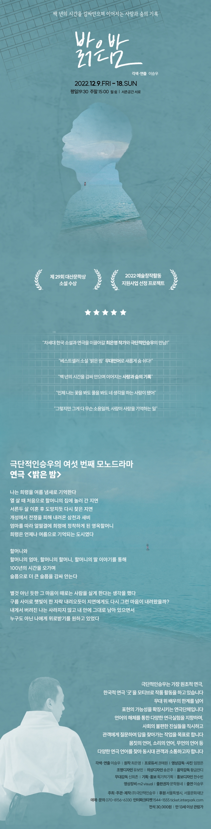 - [극단적인승우] 연극 <밝은 밤>/ 2022. 12. 9. ~ 18. 서촌공간서로