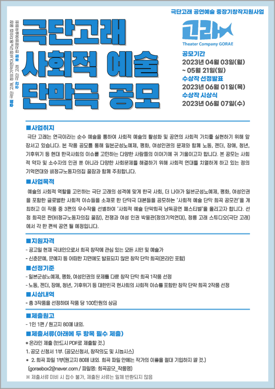 - 극단 고래 *사회적 예술 단막극 공모*