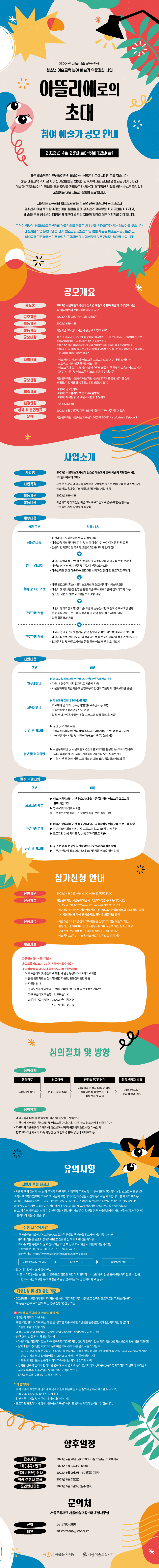 ○ 공모명: 2023년 서울예술교육센터 청소년 예술교육 분야 예술가 역량강화 사업