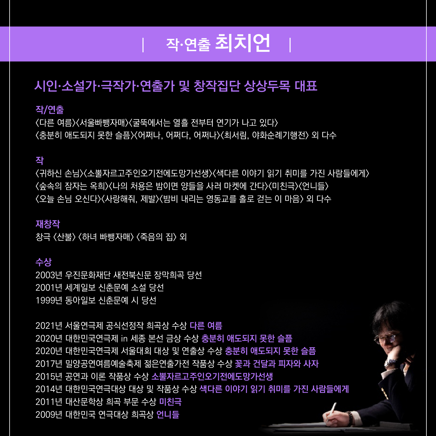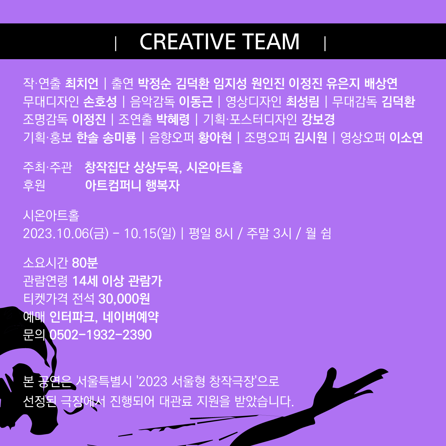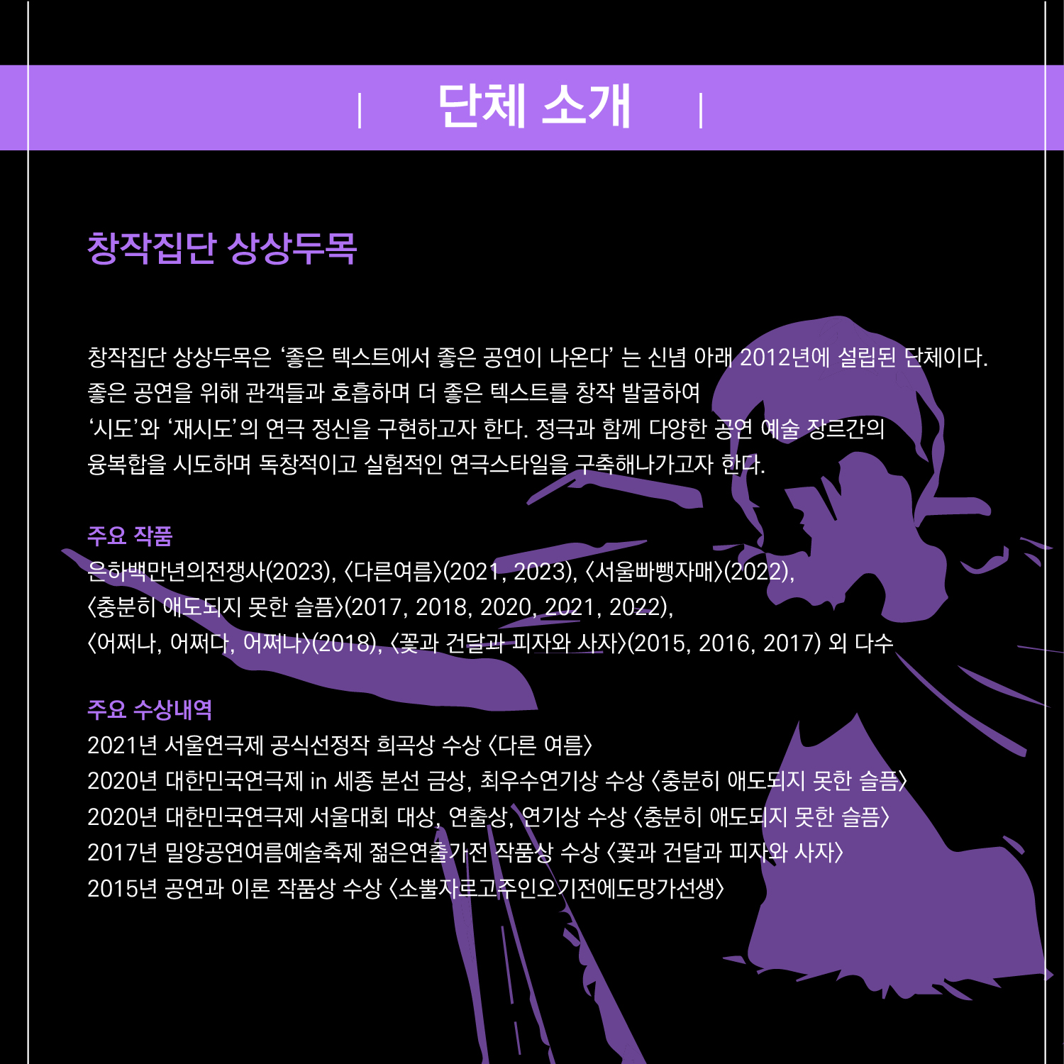 [본 공연은 서울특별시 '2023 서울형 창작극장'으로 선정된 극장에서 진행되어 대관료 지원을 받았습니다.]