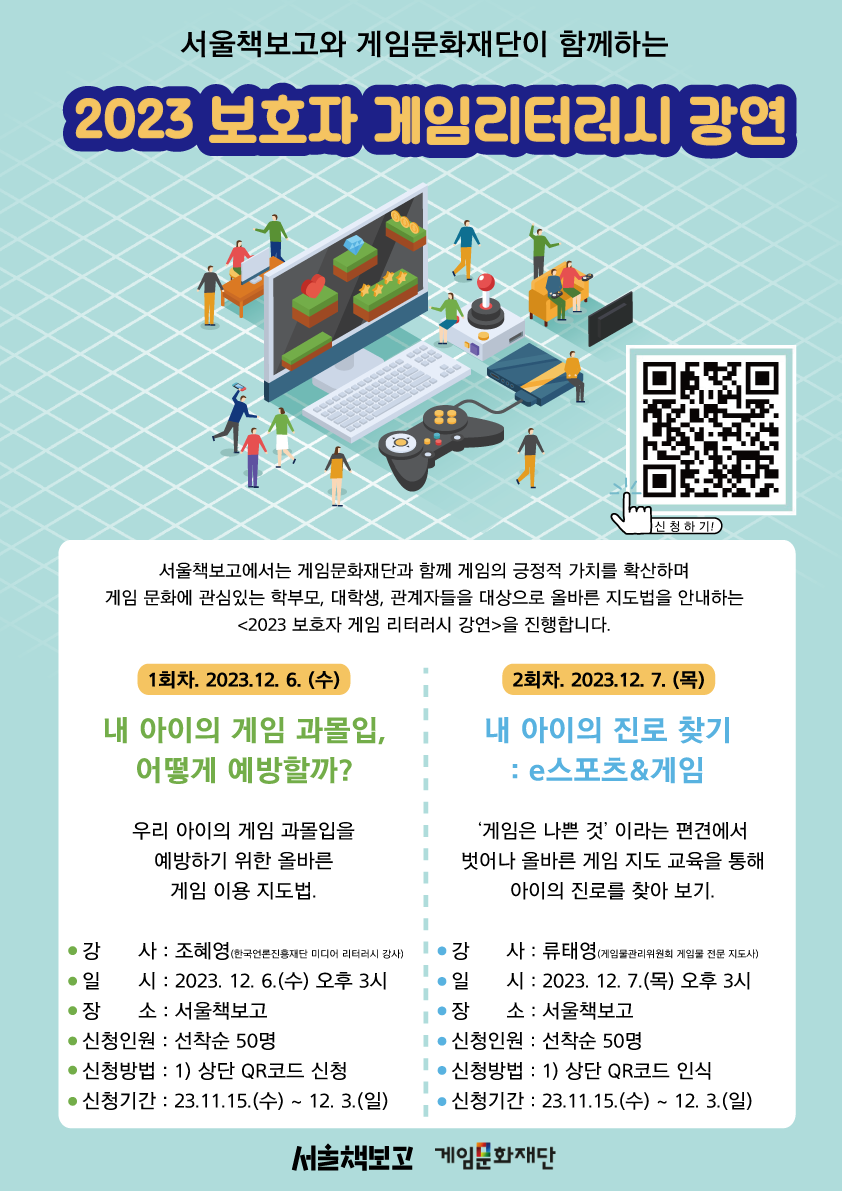 - [서울책보고x게임문화대단] 2023 보호자 게임리터러시 강연 참여자 모집