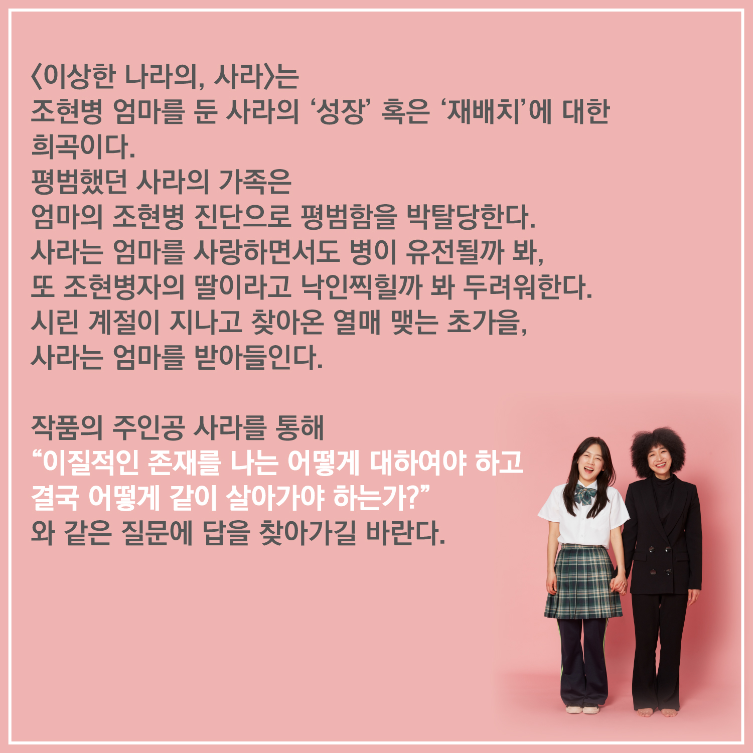 - [창작집단상상두목] 연극 <이상한 나라의 사라> 대학로예술극장 소극장 2/23 ~ 3/3