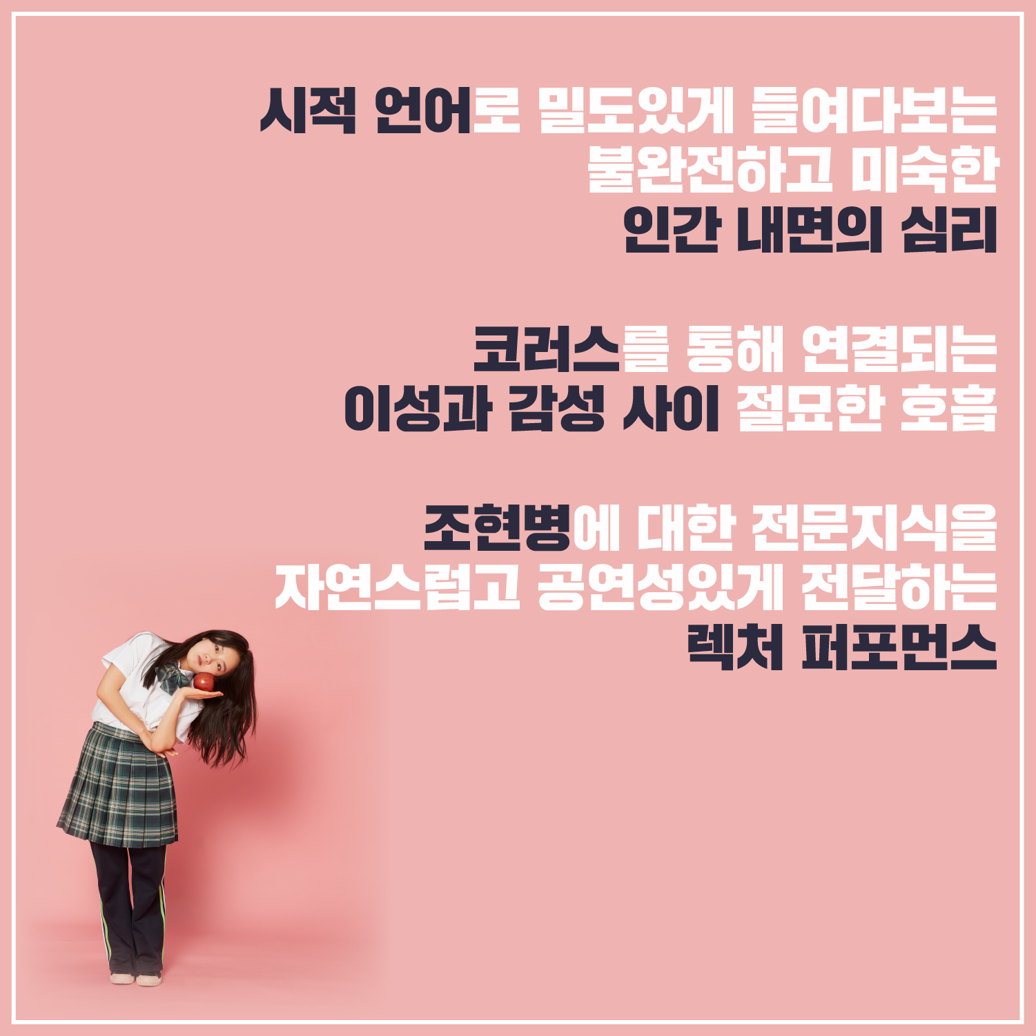 조현병에 대한 전문지식을 자연스럽고 공연성있게 전달하는 렉처 퍼포먼스!