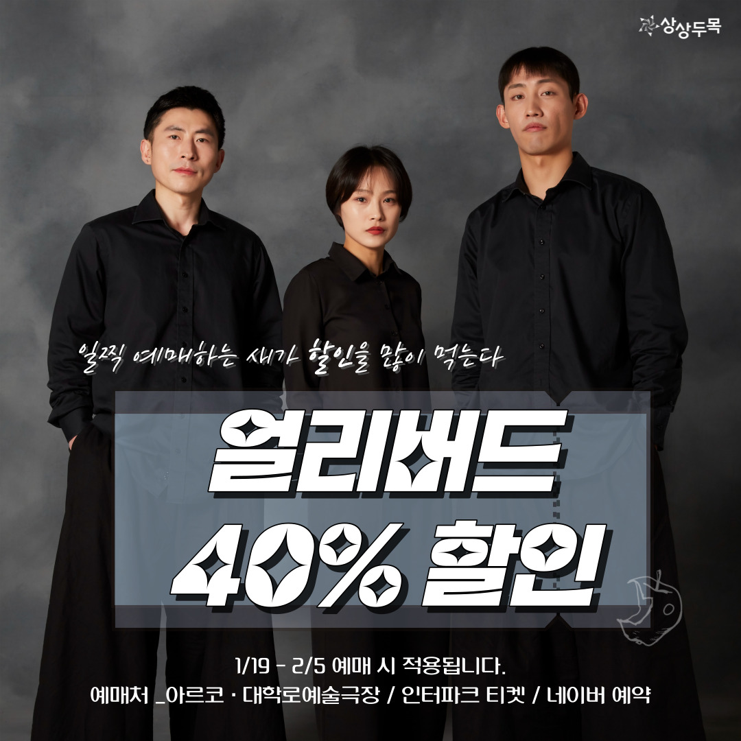 얼리버드 할인 24,000 원 (40%, 1/19 (금) ~ 2/5 (월) 예매시 적용)