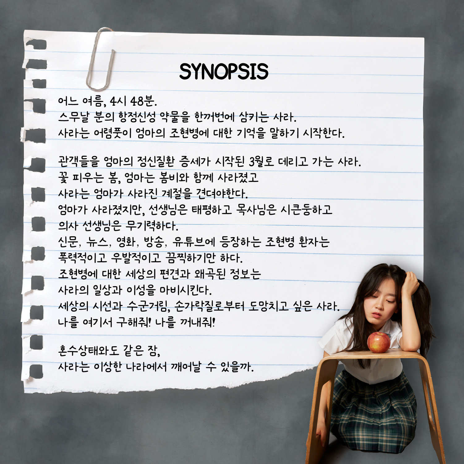 조현병에 대한 세상의 편견과 왜곡된 정보는 사라의 일상과 이성을 마비시킨다.
