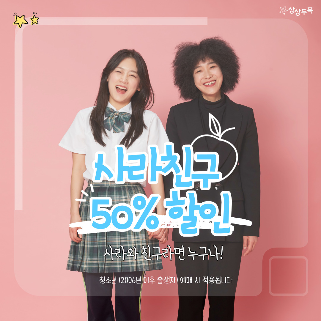 사라 친구(청소년)/ 협회원 할인 20,000 원 (50%, 학생증 및 신분증/ 서울연극협회 회원증 이미지 및 문자 확인)