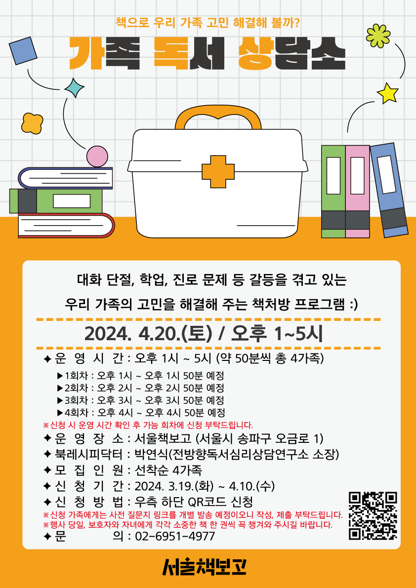 - [서울책보고] 책처방 프로그램 - 가족 독서 상담소(4월) 참여자 모집