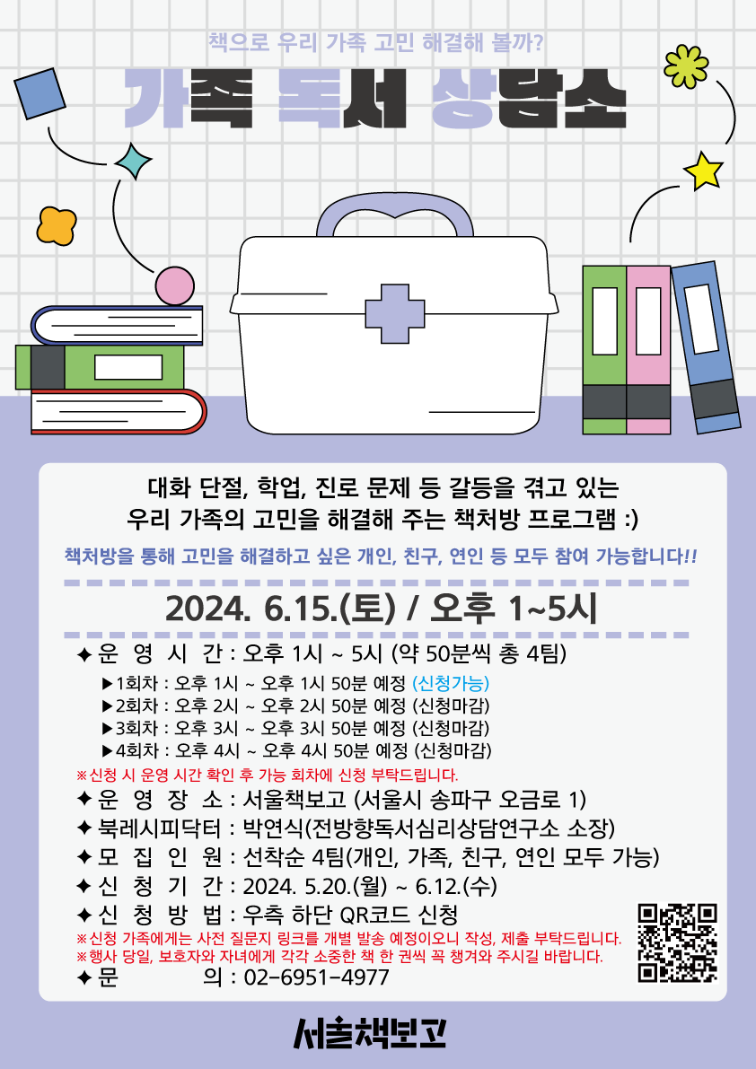 - [서울책보고] 책처방 프로그램 '가족 독서 상담소'(6월) 참여자 모집
