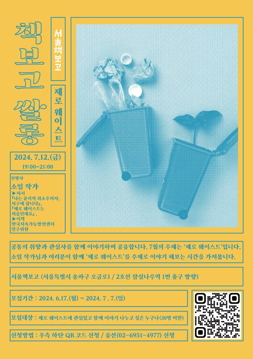 - [서울책보고] 책보고 쌀롱(7월) ; 제로 웨이스트 참여자 모집