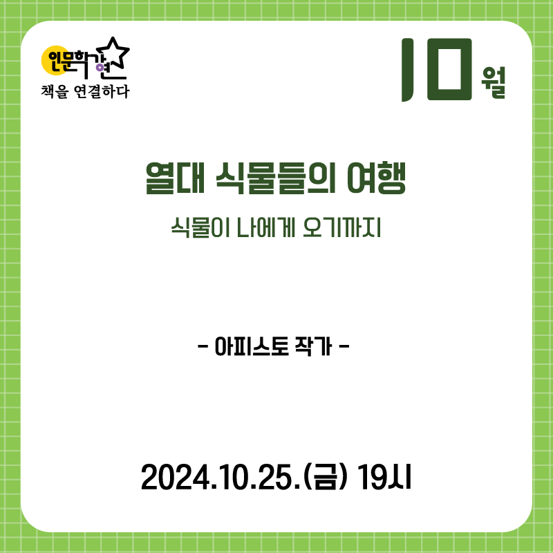 [서울책보고] 인문학강연(10월) <열대 식물들의 여행_식물이 나에게 오기까지> 참여자 모집