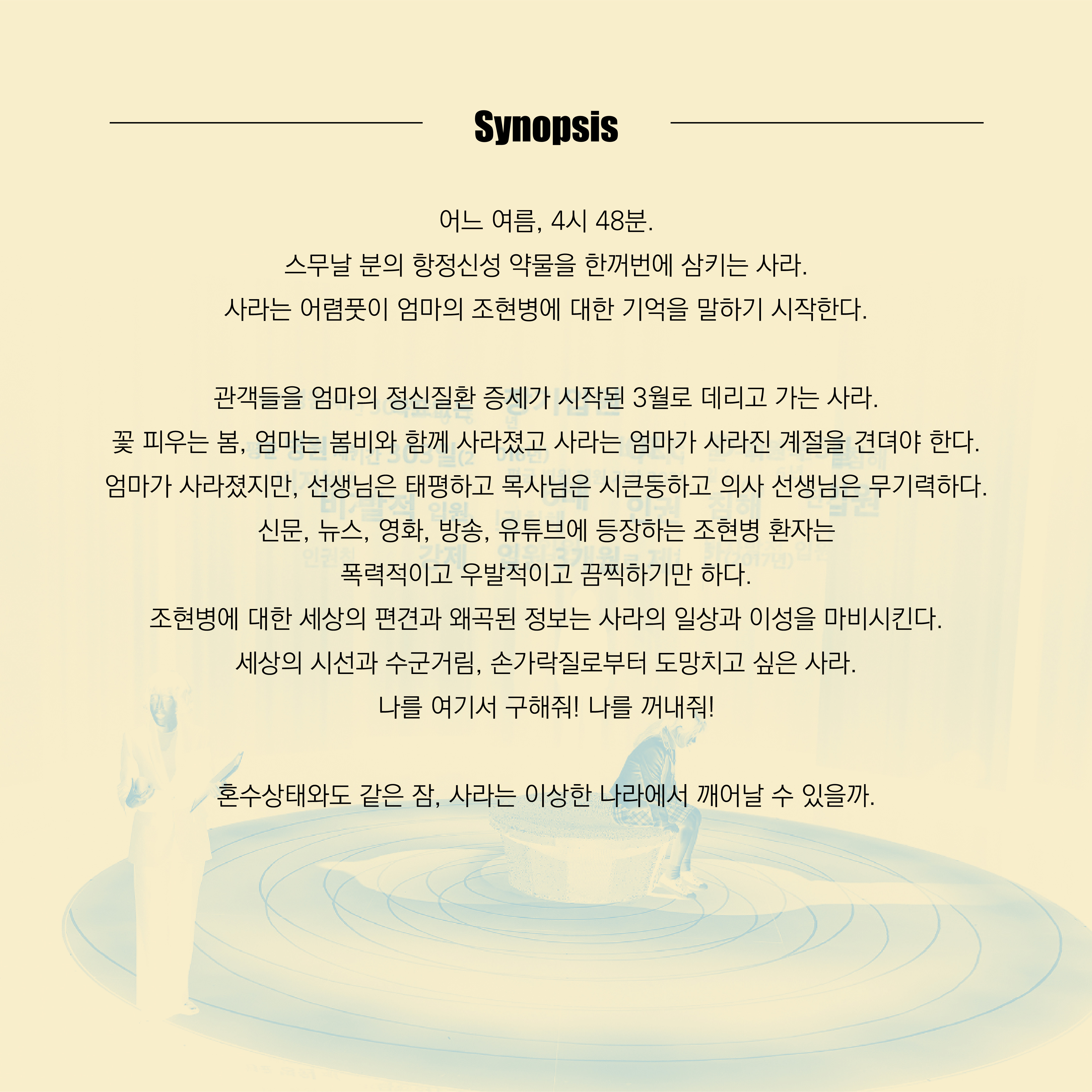 조현병에 대한 세상의 편견과 왜곡된 정보는 사라의 일상과 이성을 마비시킨다.