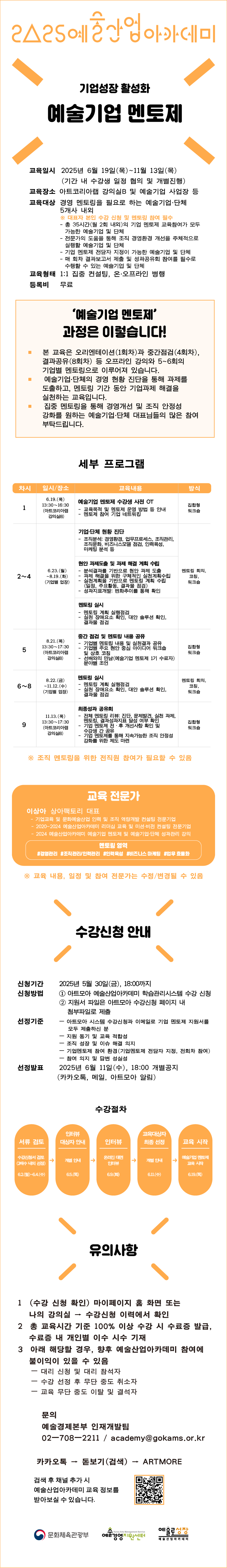 - [예술경영지원센터] 2025 예술산업아카데미 <예술기업 멘토제> 참여기업 모집