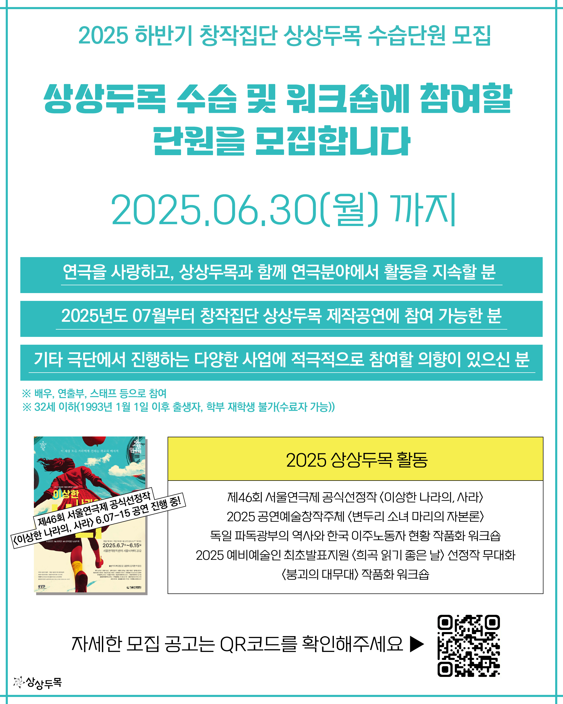 [모집] 2025 하반기 창작집단 상상두목 수습단원을 모집합니다 (~6/30)