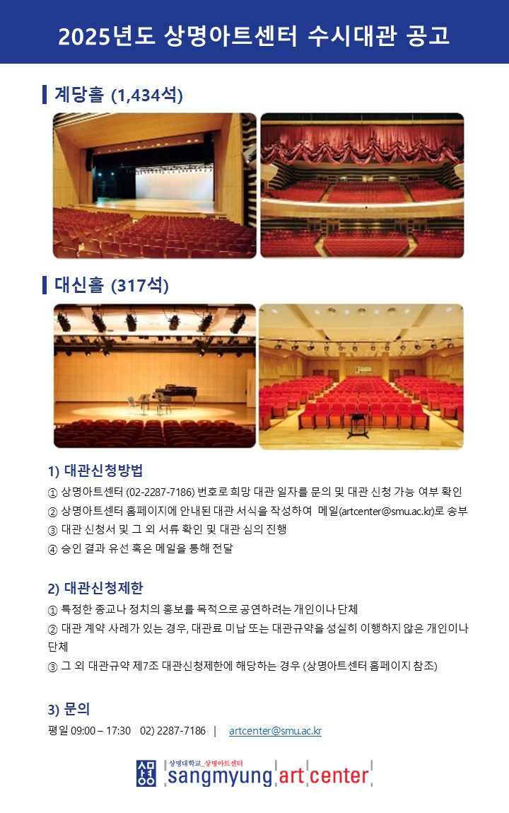 [상명아트센터] 2025년 아트센터 수시대관공고