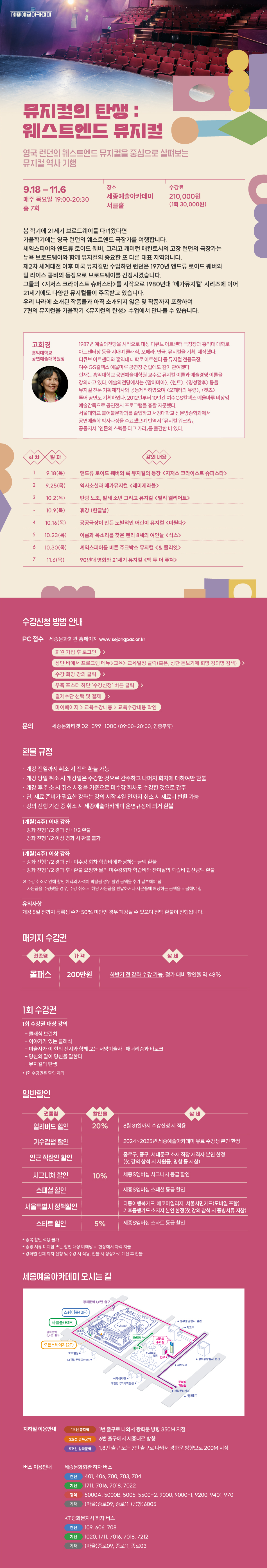 - [강좌] [세종문화회관] 뮤지컬의 탄생 : 21세기 웨스트앤드 뮤지컬 (※~9.5 얼리버드 20%할인 진행 중)