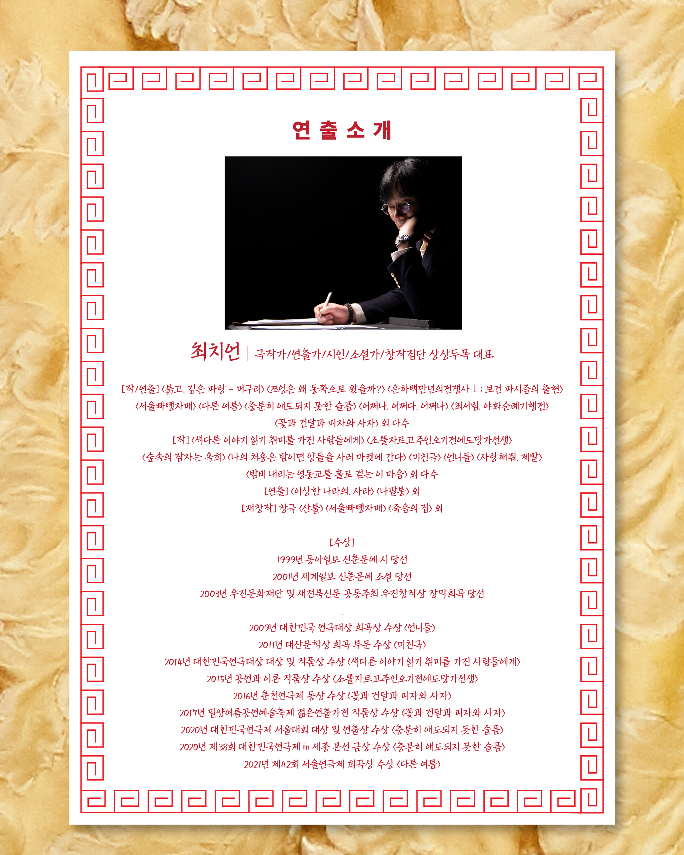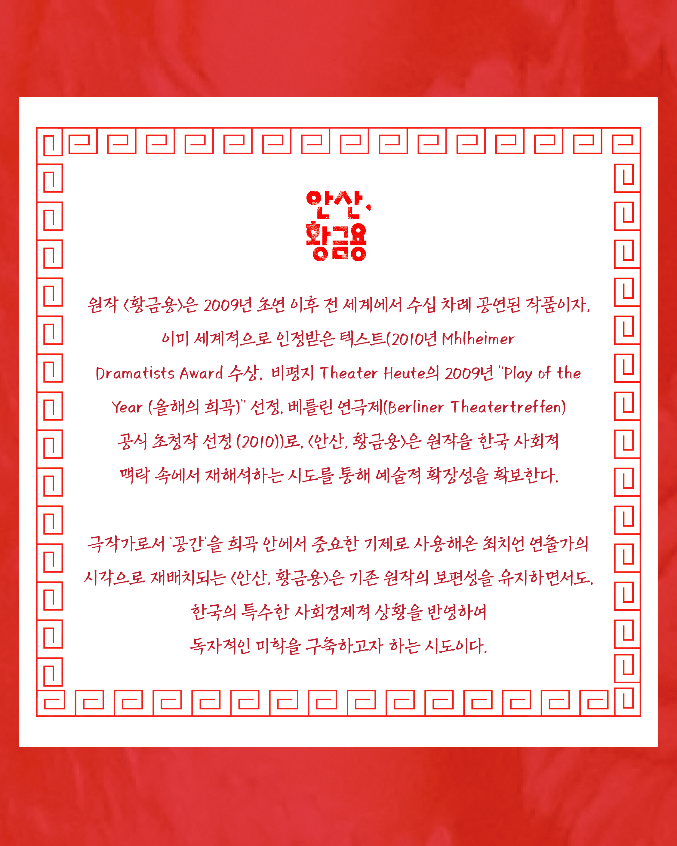 - 연극 <안산, 황금용> - 2025년 서울문화재단 예술창작활동지원 선정 프로젝트 _ 12월 12일부터 21일까지, 씨어터 쿰 / 창작집단 상상두목>