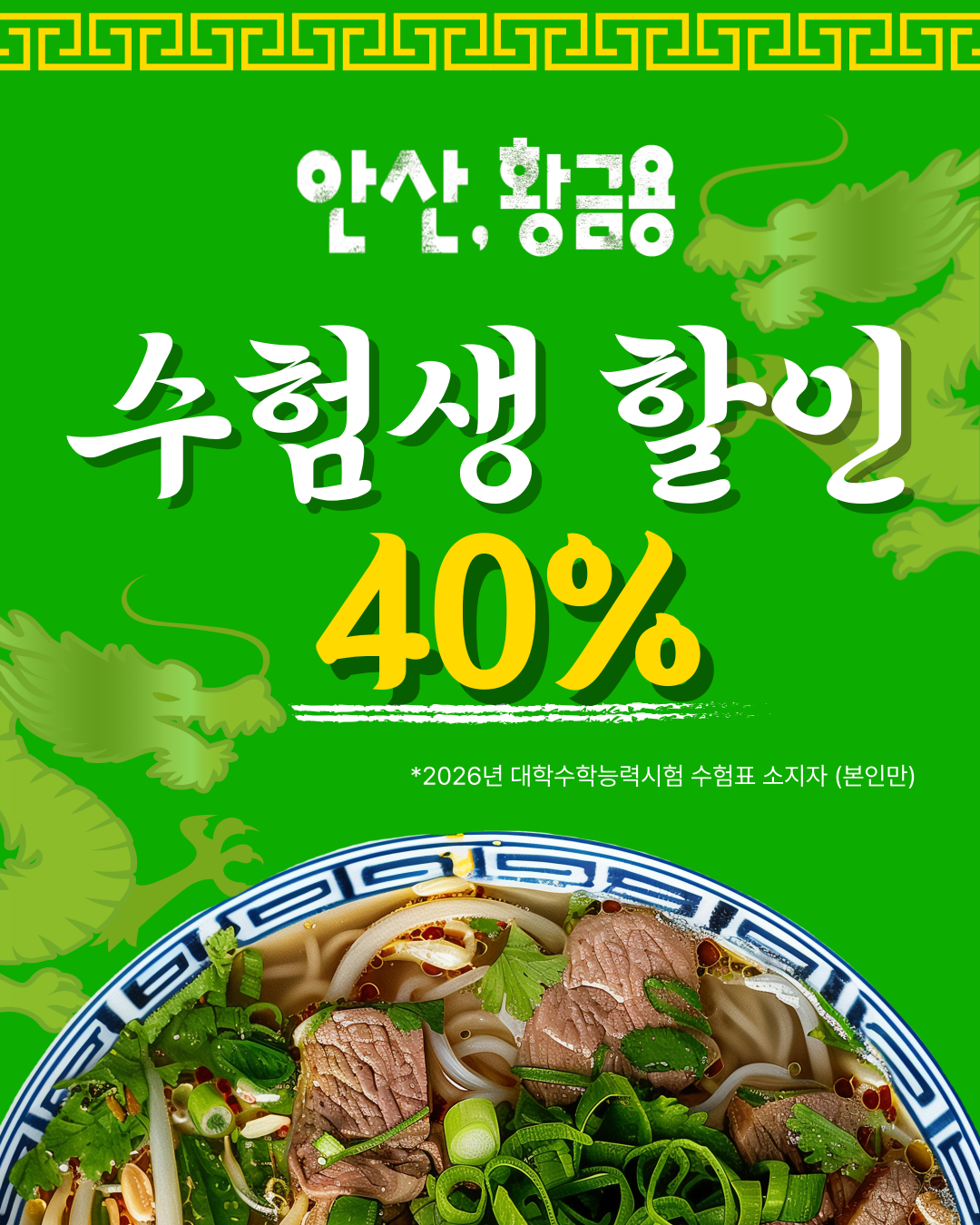 - 수험생 할인 40% (2026년 대학수학능력시험 수험표 소지자/본인만)