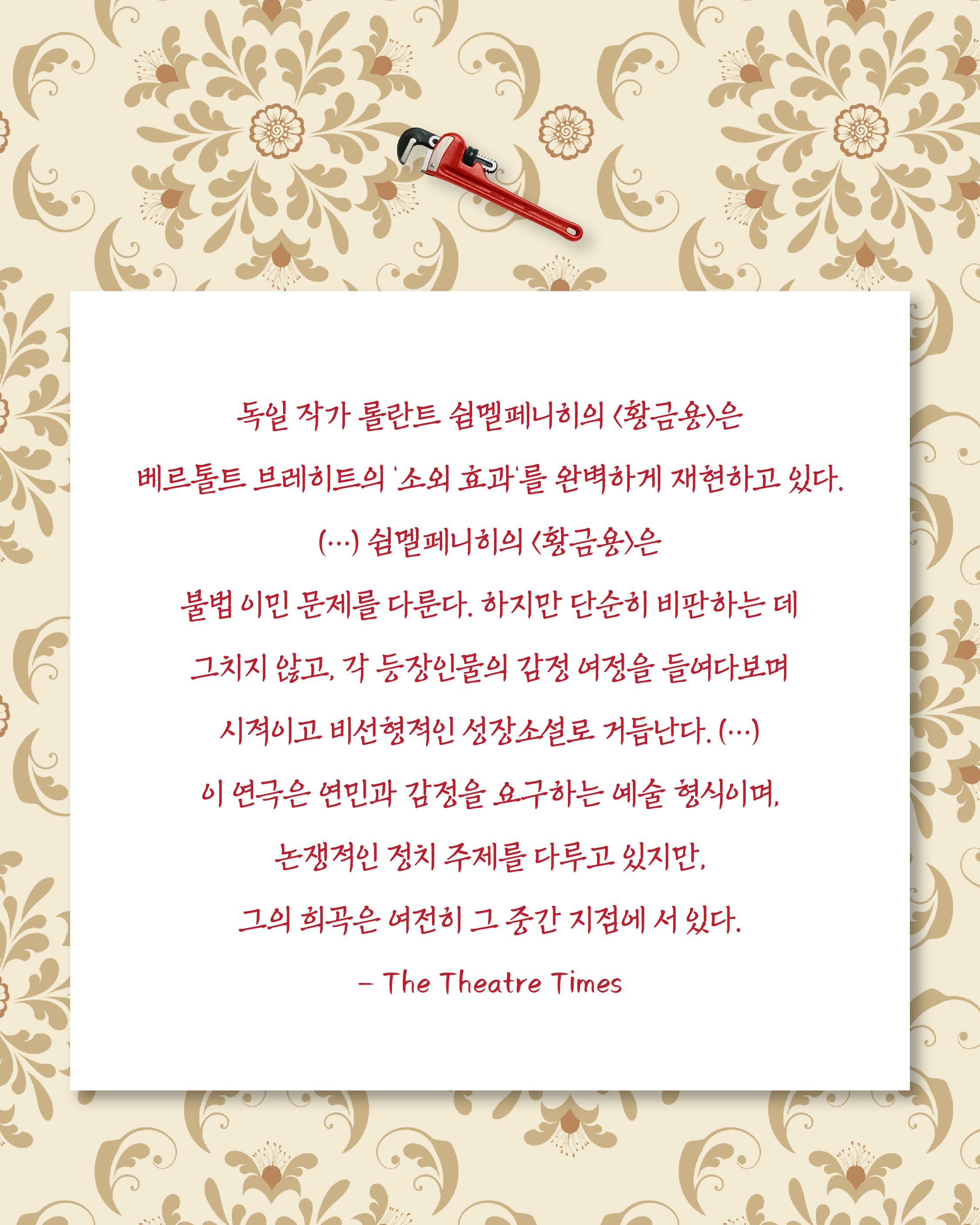 독일 작가 롤란트 쉼멜페니히의 <황금용>은 베르톨트 브레히트의 ‘소외 효과’를 완벽하게 재현하고 있다.