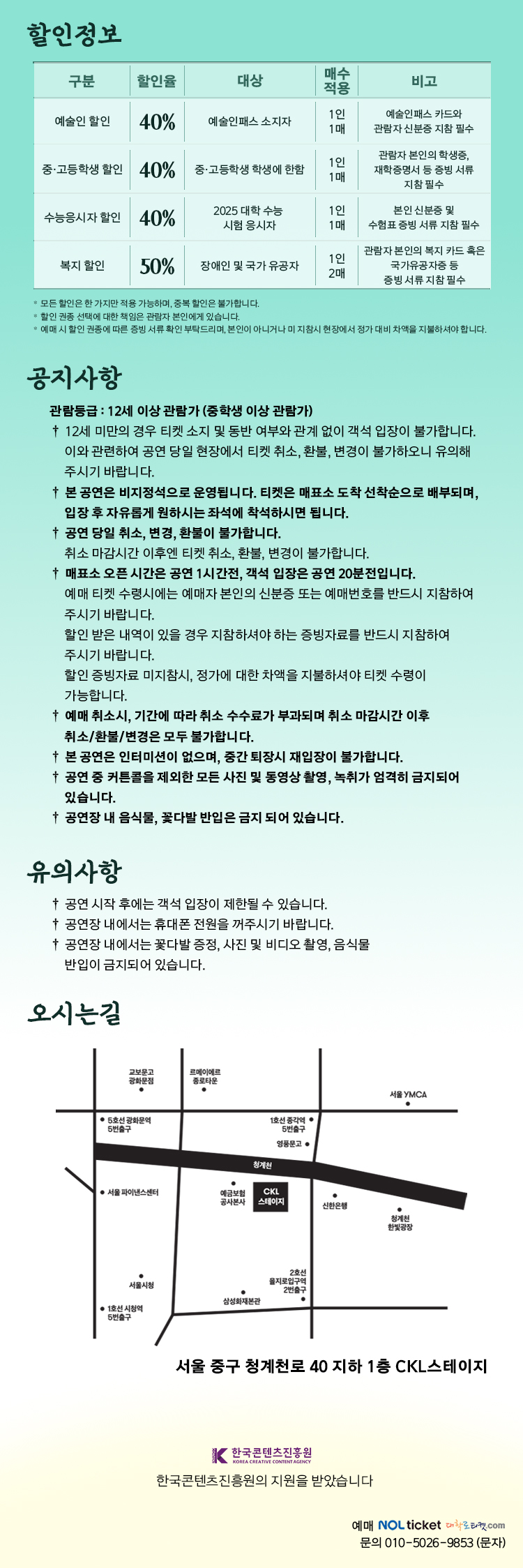 예매문의(내선1번) 평일 13시-18시, 주말/공휴일 휴무
