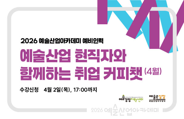 - [예술경영지원센터] 예술산업 현직자와 함께하는 취업 커피챗(4월) 수강생 모집