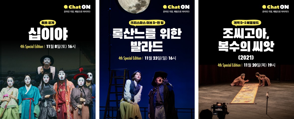 국립극단(단장 겸 예술감독 박정희) 온라인 극장(이하 온라인 극장)이 오는 11월 1일, 개관 4주년을 맞이해 VOD 중계와 함께 실시간 채팅으로 소통하는 특별한 이벤트 ChatON을 선보인다.