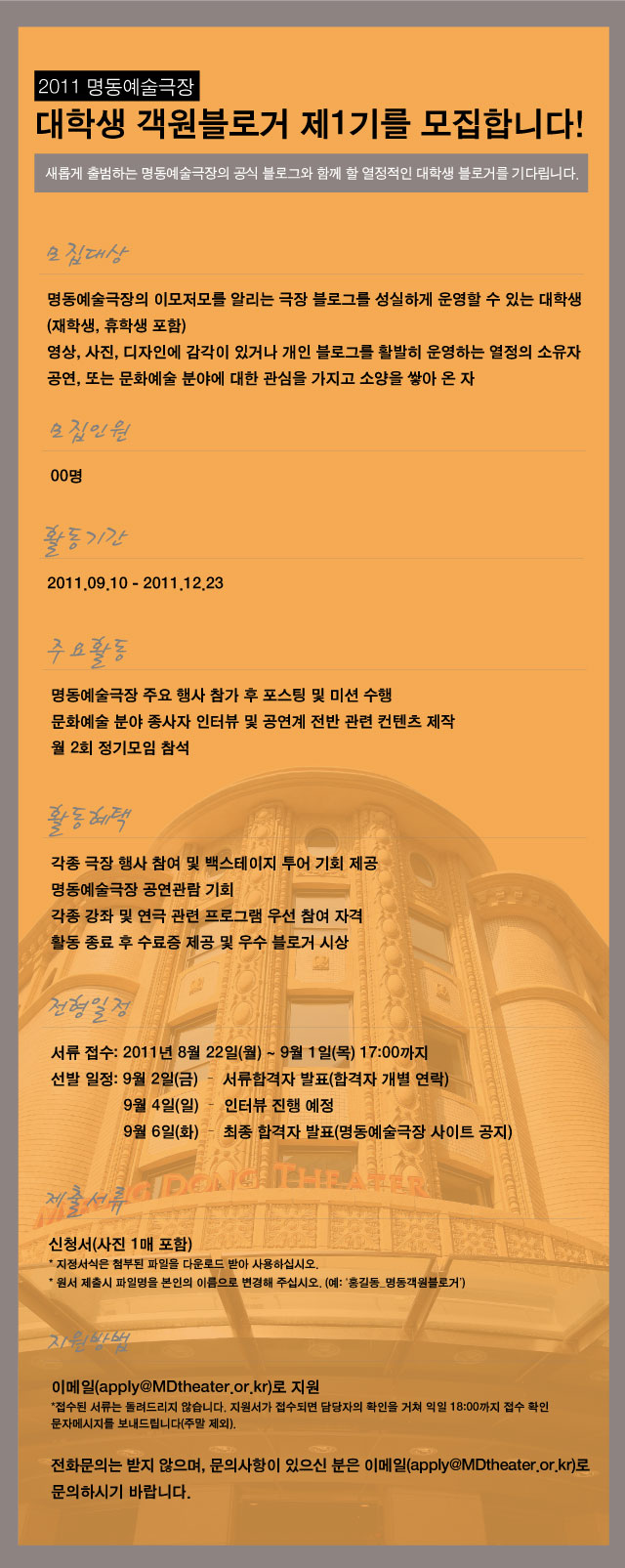 명동예술극장 대학생 객원블로거 제1기를 모집합니다!