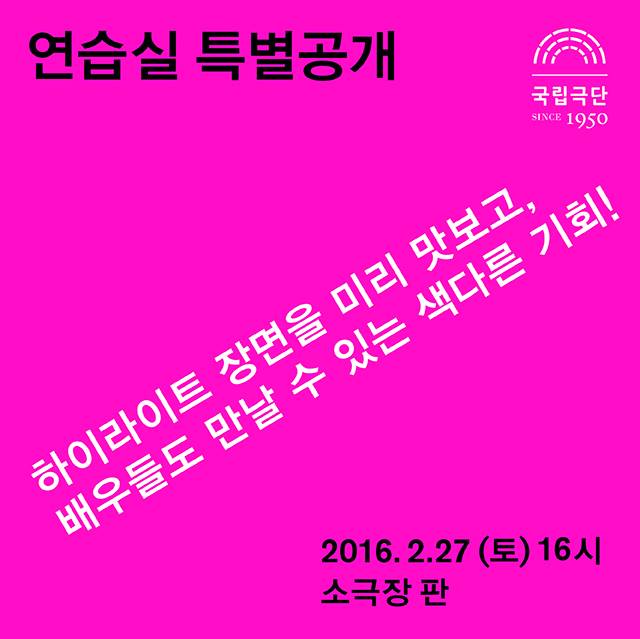 특별공개 중 사진/영상 촬영이 진행되며, 국립극단 홍보 채널 및 외부 언론에 노출될 수 있음을 양지바랍니다.