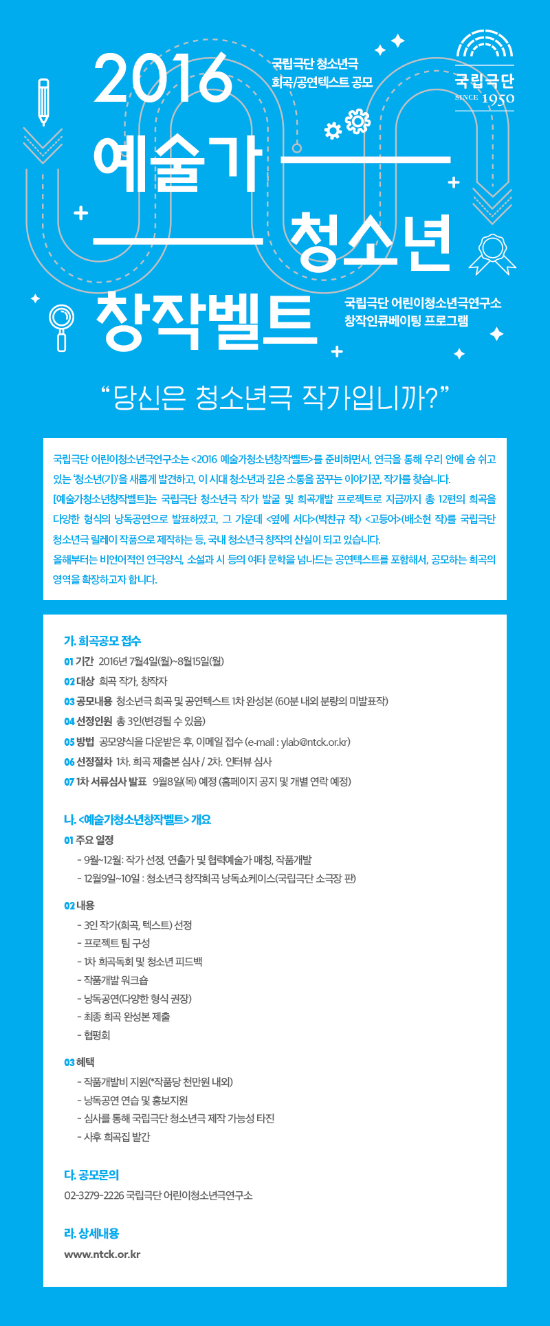 - [청소년극 희곡공모] 2016년 예술가청소년창작벨트 참여작가를 찾습니다.