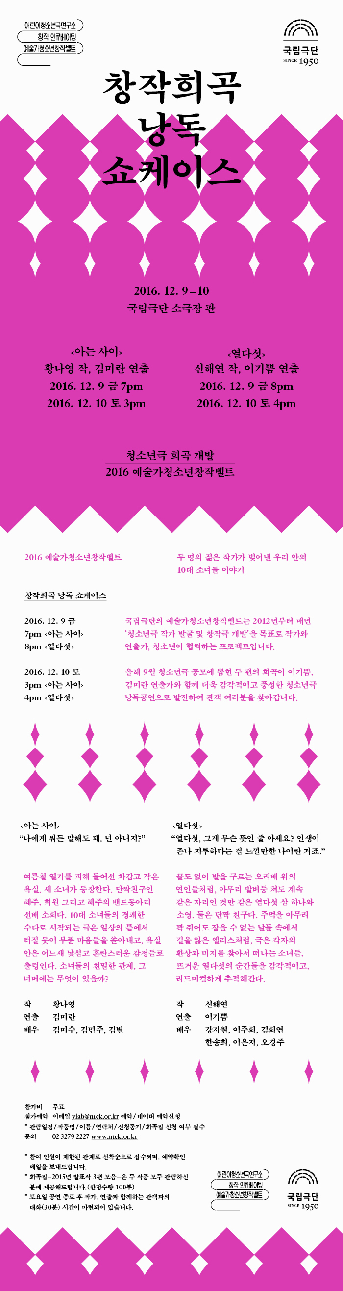 - 2016 예술가청소년창작벨트 <청소년극 창작희곡 낭독쇼케이스> 안내