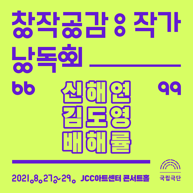*본 낭독회는 대학로 ‘JCC아트센터 콘서트홀’에서 진행됩니다. 자세한 사항은 낭독회 상세페이지를 참고해 주시기 바랍니다.
