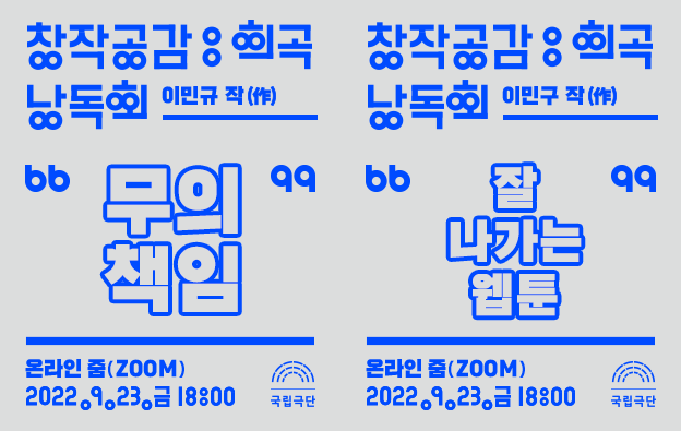 - [창작공감: 희곡] 낭독회 – 무의 책임, 잘 나가는 웹툰 예약 안내
