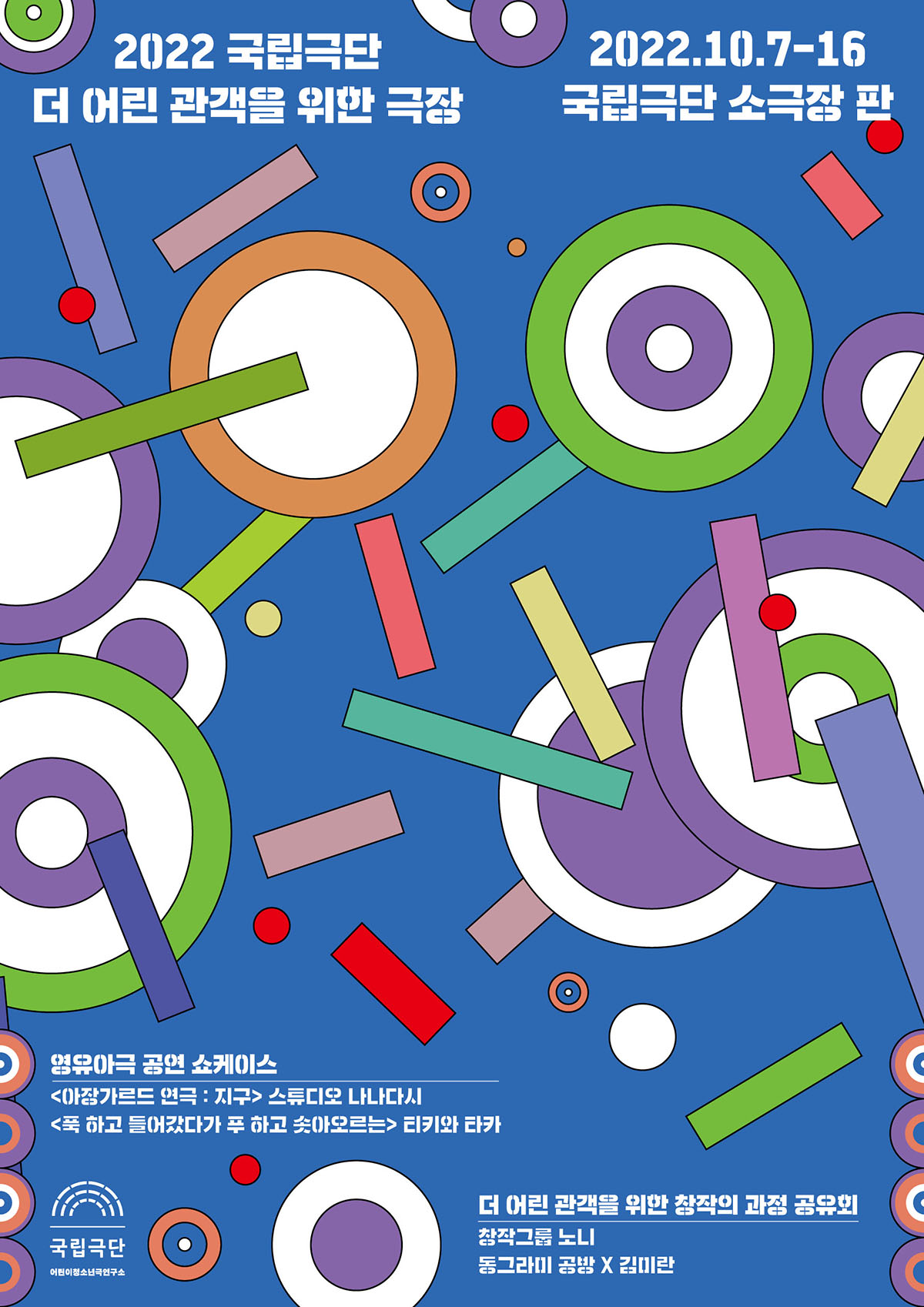국립극단 어린이청소년극연구소에서는 36개월 아기 관객에 대한 다양한 연구개발 과정을 공유하고, 영유아극에 대한 사회적 관심을 확장하고자 영유아 공연 쇼케이스 2편과 새롭게 시작하는 2팀의 창작과정 공유회를 개최합니다.