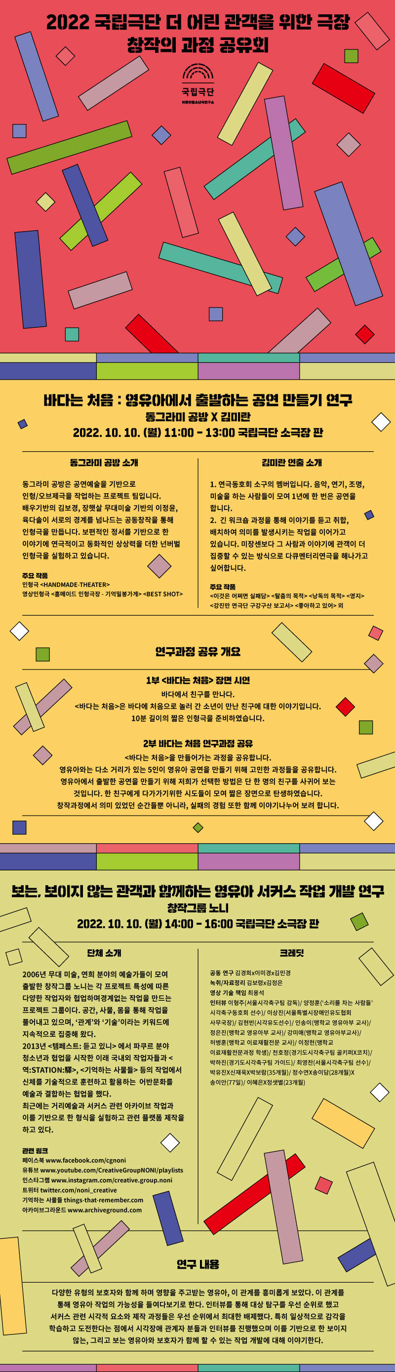 - 2022 [더 어린 관객을 위한 극장] 창작의 과정 공유회 안내_동그라미 공방×김미란, 창작그룹 노니