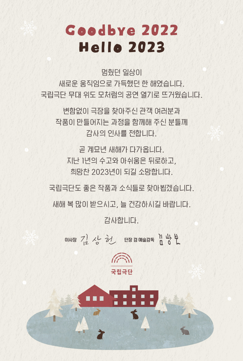 국립극단도 좋은 작품과 소식들로 찾아뵙겠습니다.