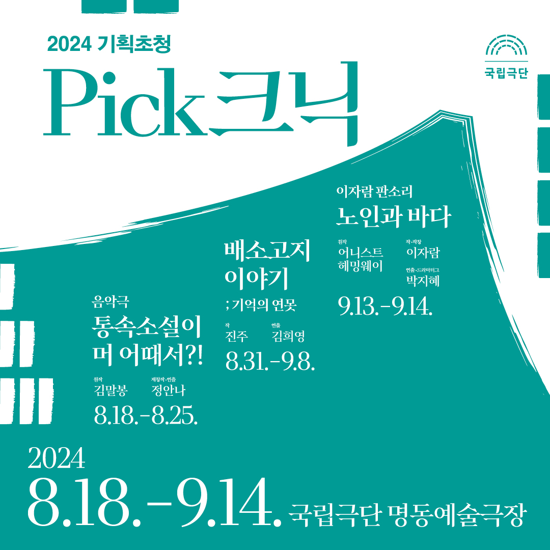 -2024 기획초청 Pick크닉은 민간 극단의 우수 제작 공연을 초청, 기획함으로써 민간 극단과의 상생을 도모하여 연극계의 활성화를 위해 기획된 사업이다. 민간 극단과의 협업을 통해 국립예술단체로서의 공공성을 수행하는 동시에, 국민들이 수준 높은 공연을 접하여 연극적 경험을 확장하도록 돕고자 한다. Pick크닉은 국립극단이 Pick한 작품이라는 의미와, 소풍을 뜻하는 Picnic의 합성어로 공연을 보러 오는 발걸음이 피크닉을 떠나듯 즐거운 경험이 되길 바라는 의미를 담았다. 2024년 여름을 시작으로 향후 3년간 여름, 겨울 시즌 동안 관객들과 만날 예정이다.