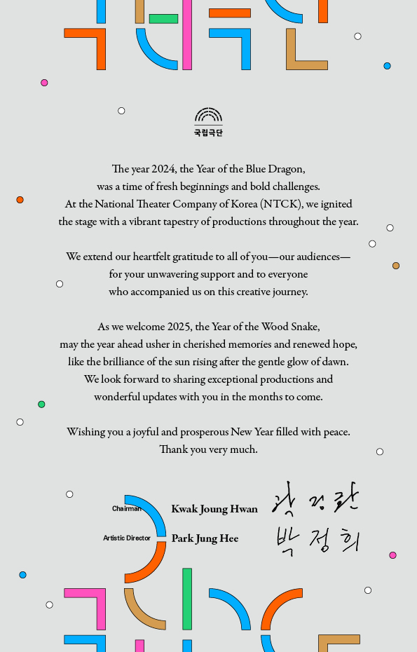 국립극단도 좋은 작품과 소식들로 찾아뵙겠습니다.