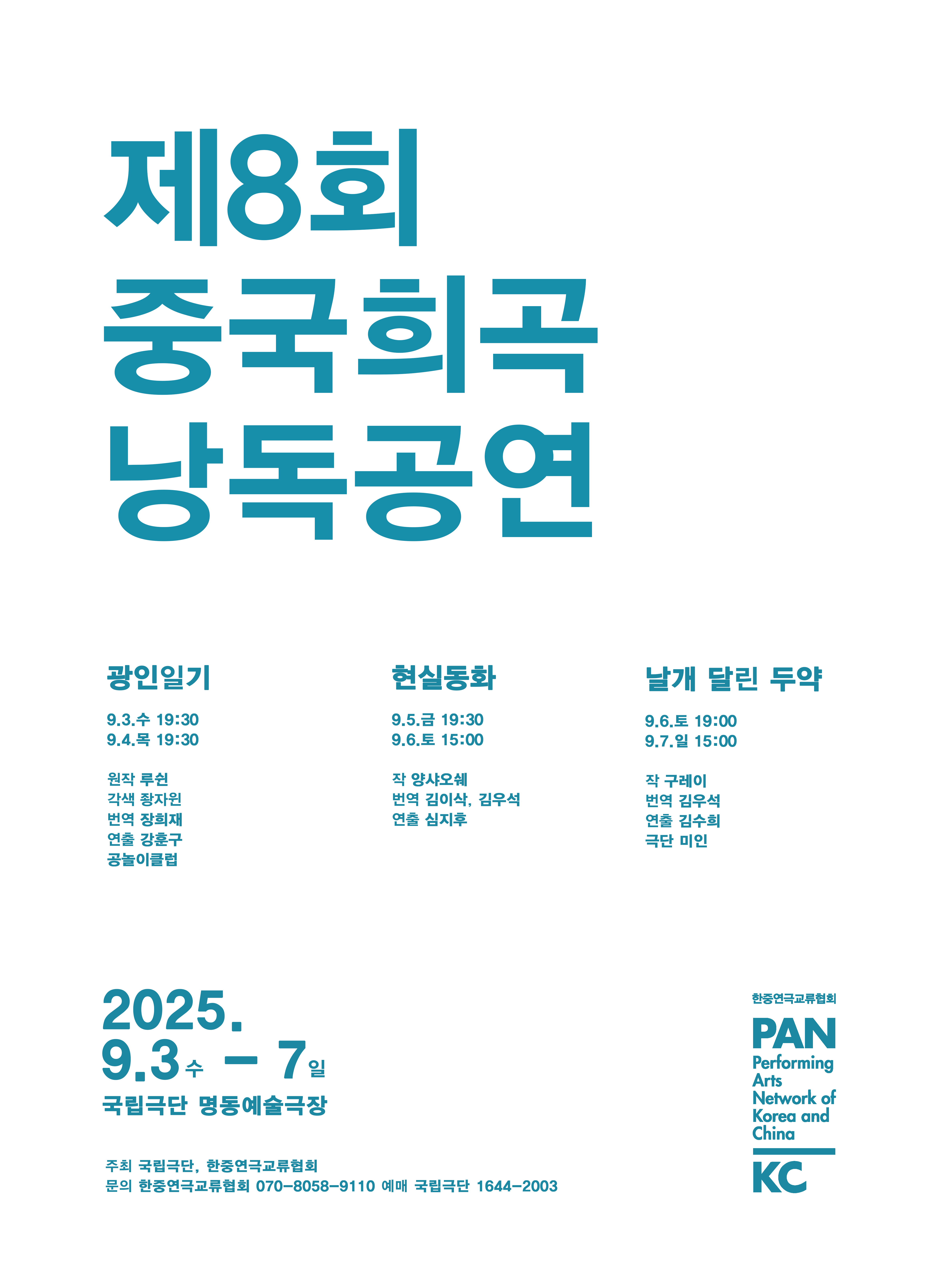 [제8회 중국희곡 낭독공연]은 국립극단, 한중연극교류협회가 공동주최 합니다.
