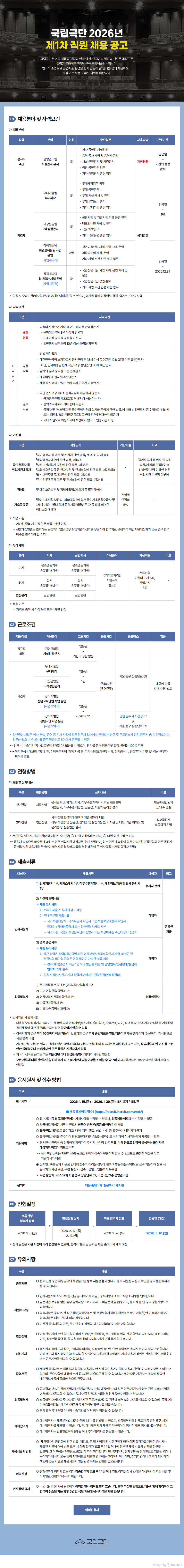 국립극단 2026년 제1차 채용 공고