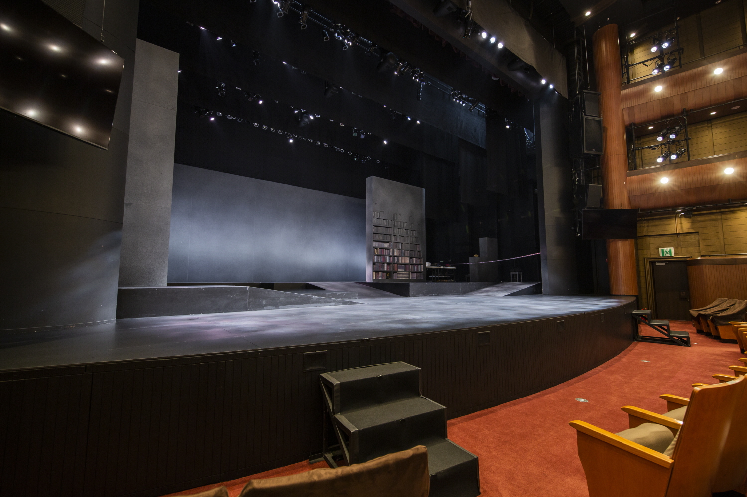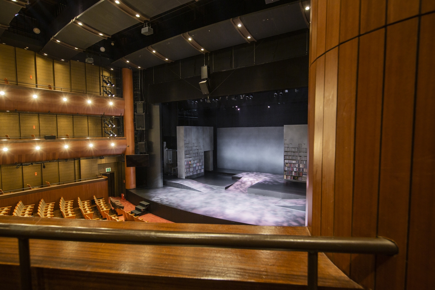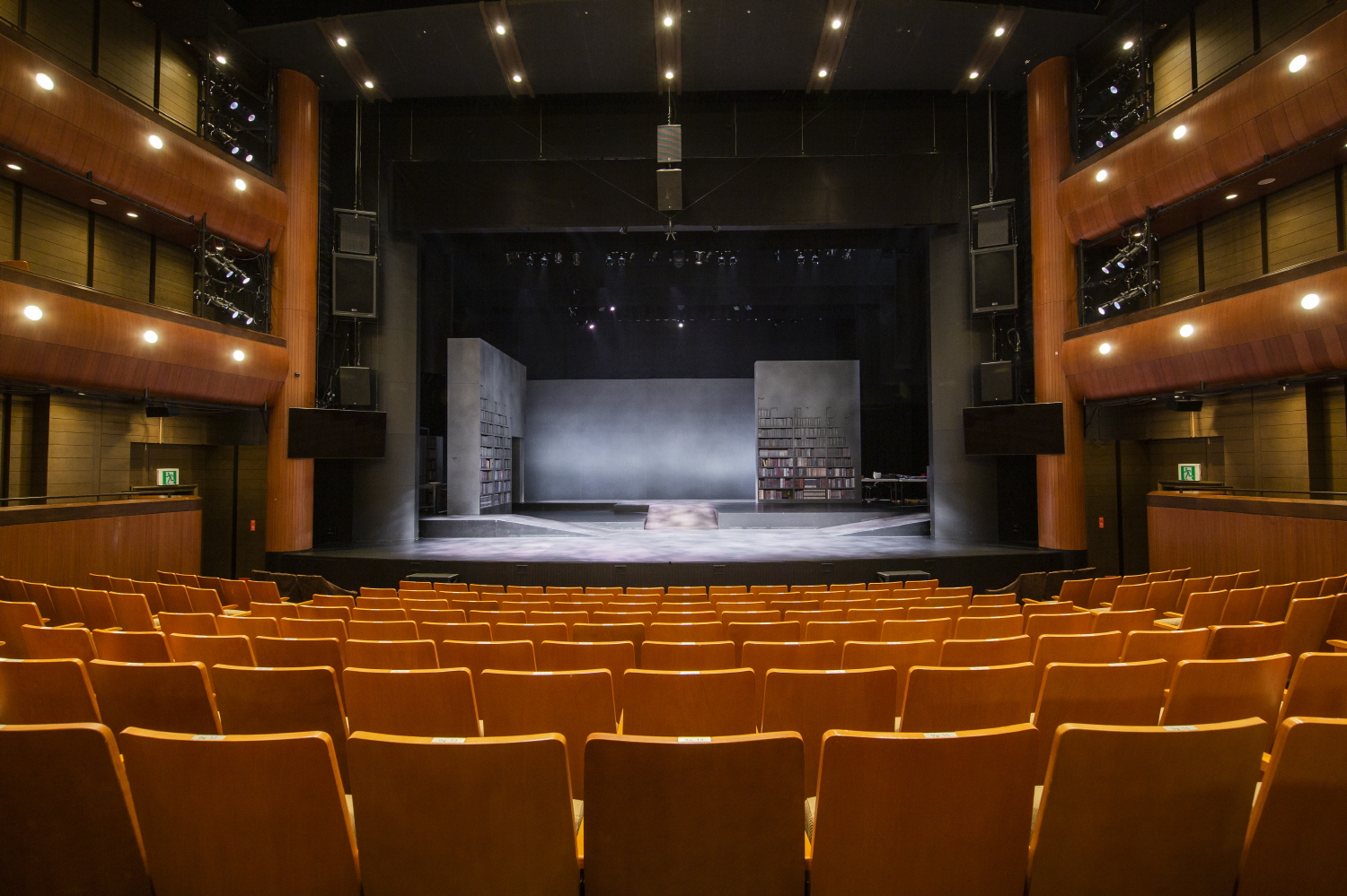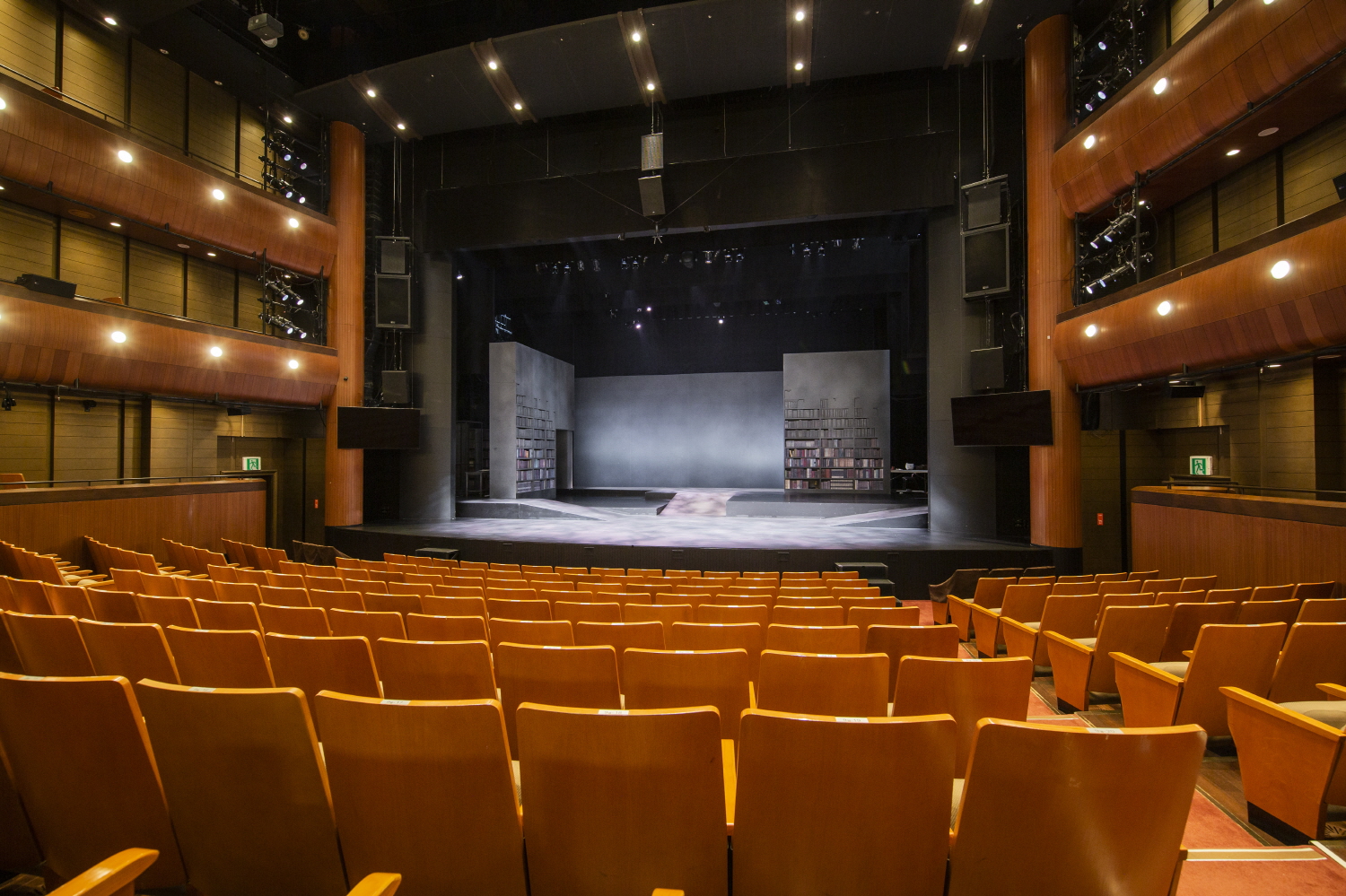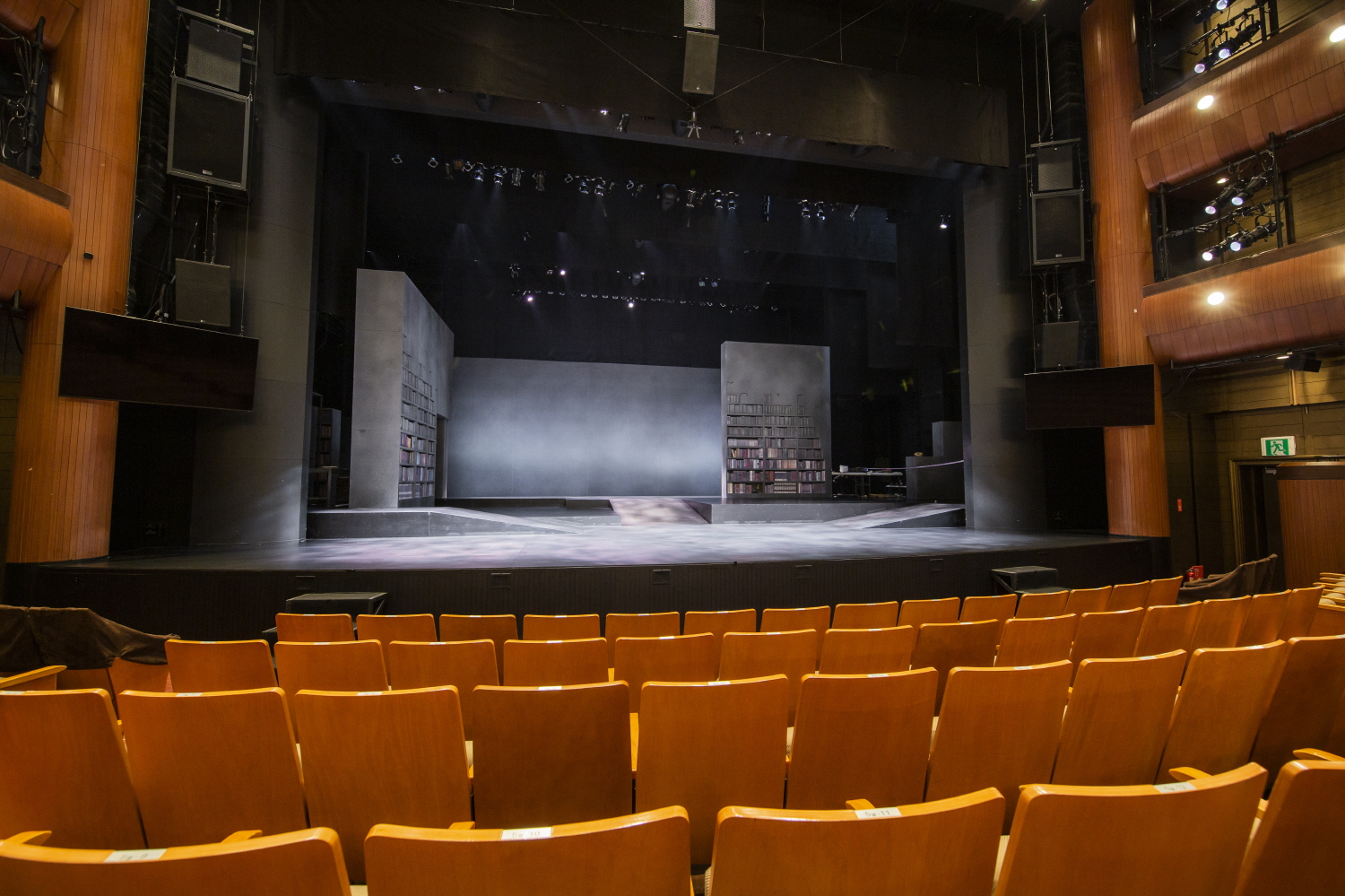 - 본 사진은 2019 <알리바이 연대기>(무대디자인 서지영) 무대를 촬영한 사진이며, 무대세트에 따라 시야가 달라질 수 있습니다.