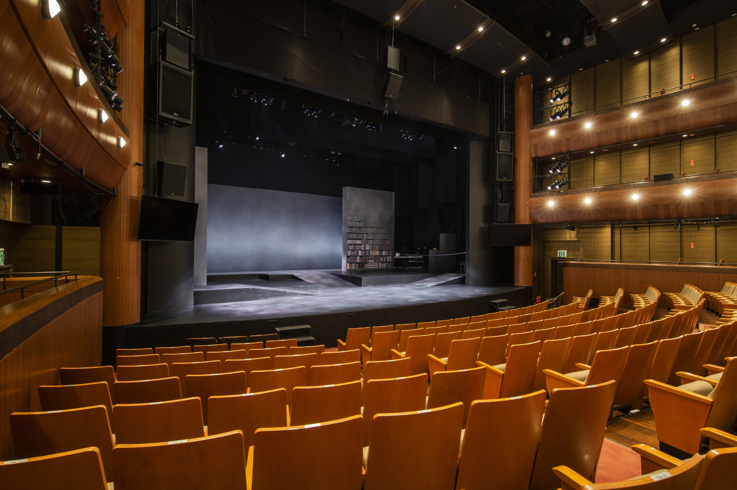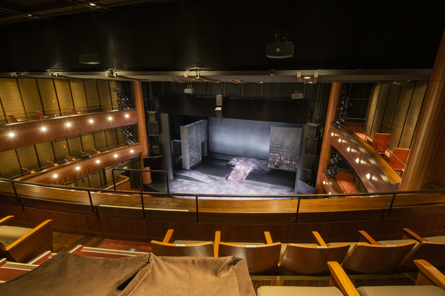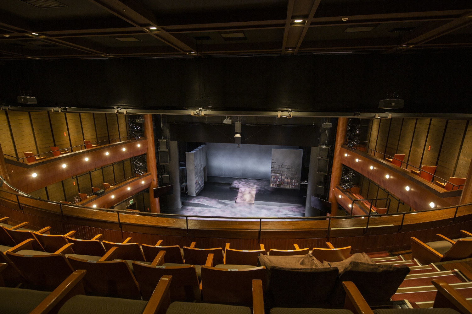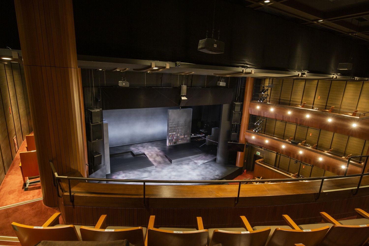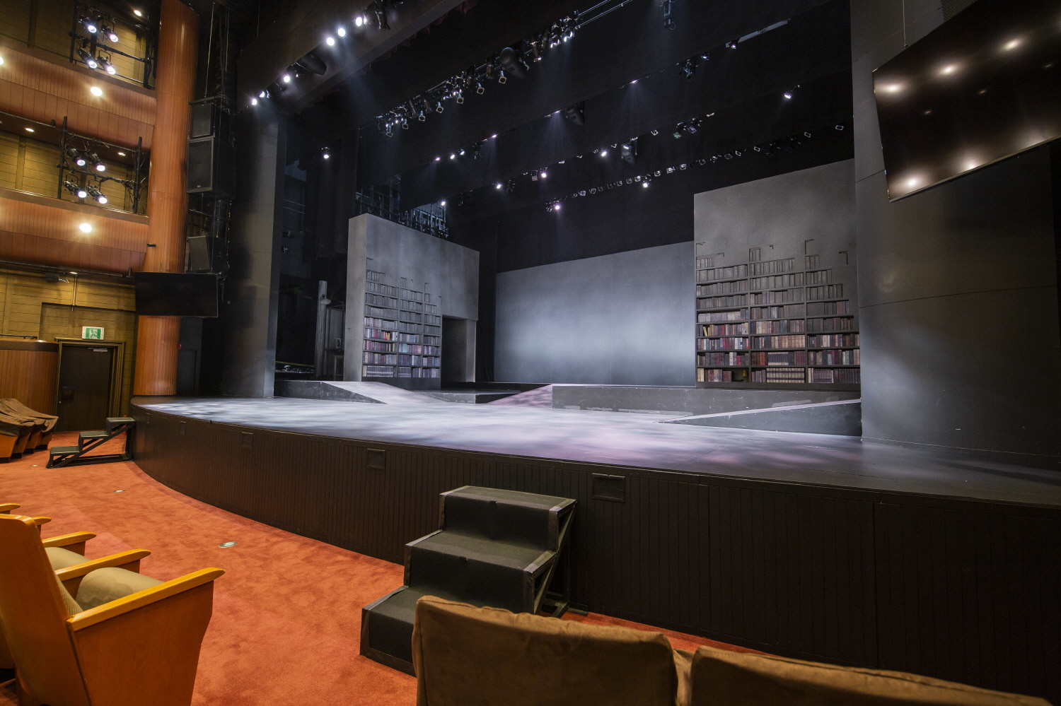 - 본 사진은 2019 <알리바이 연대기>(무대디자인 서지영) 무대를 촬영한 사진이며, 무대세트에 따라 시야가 달라질 수 있습니다.