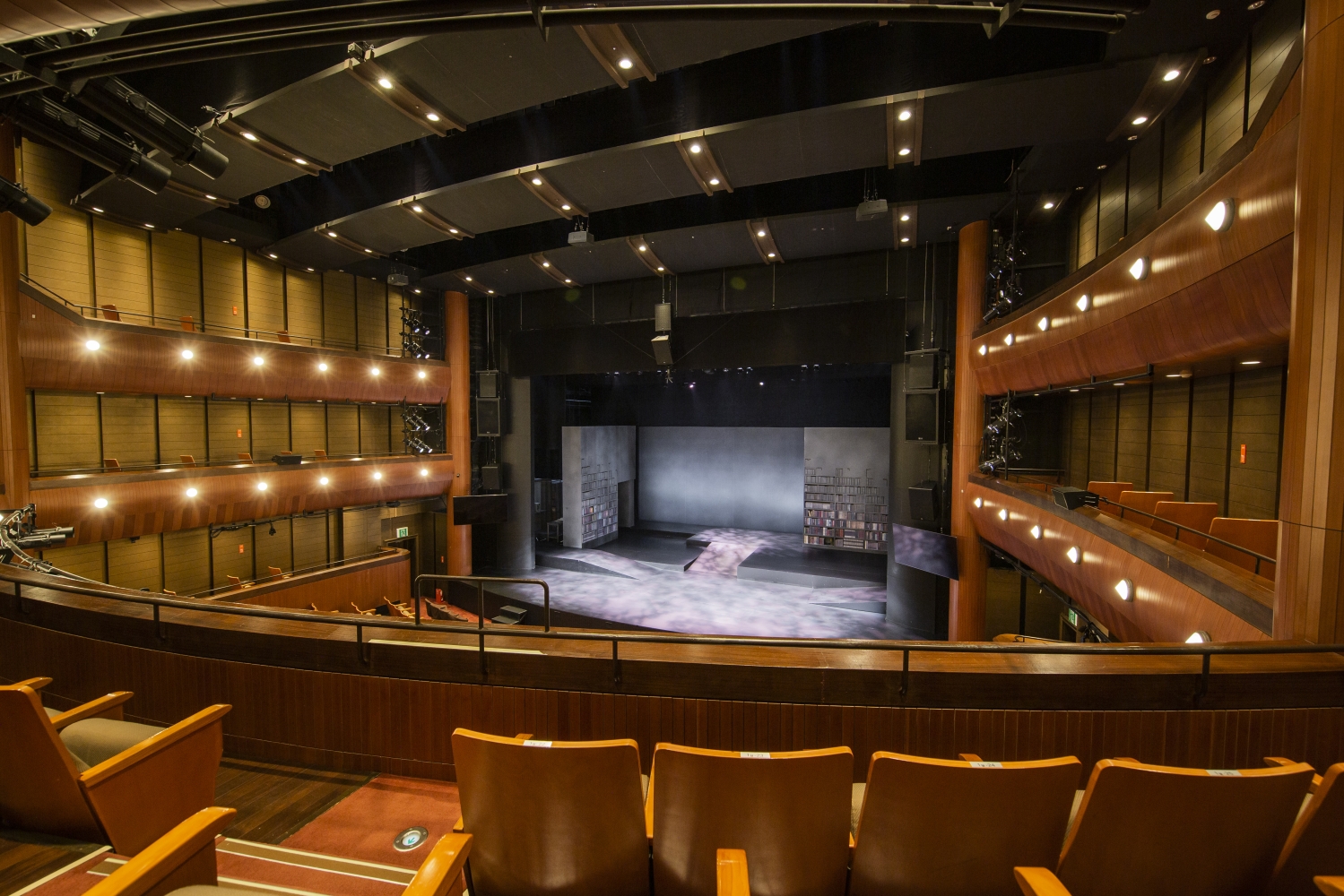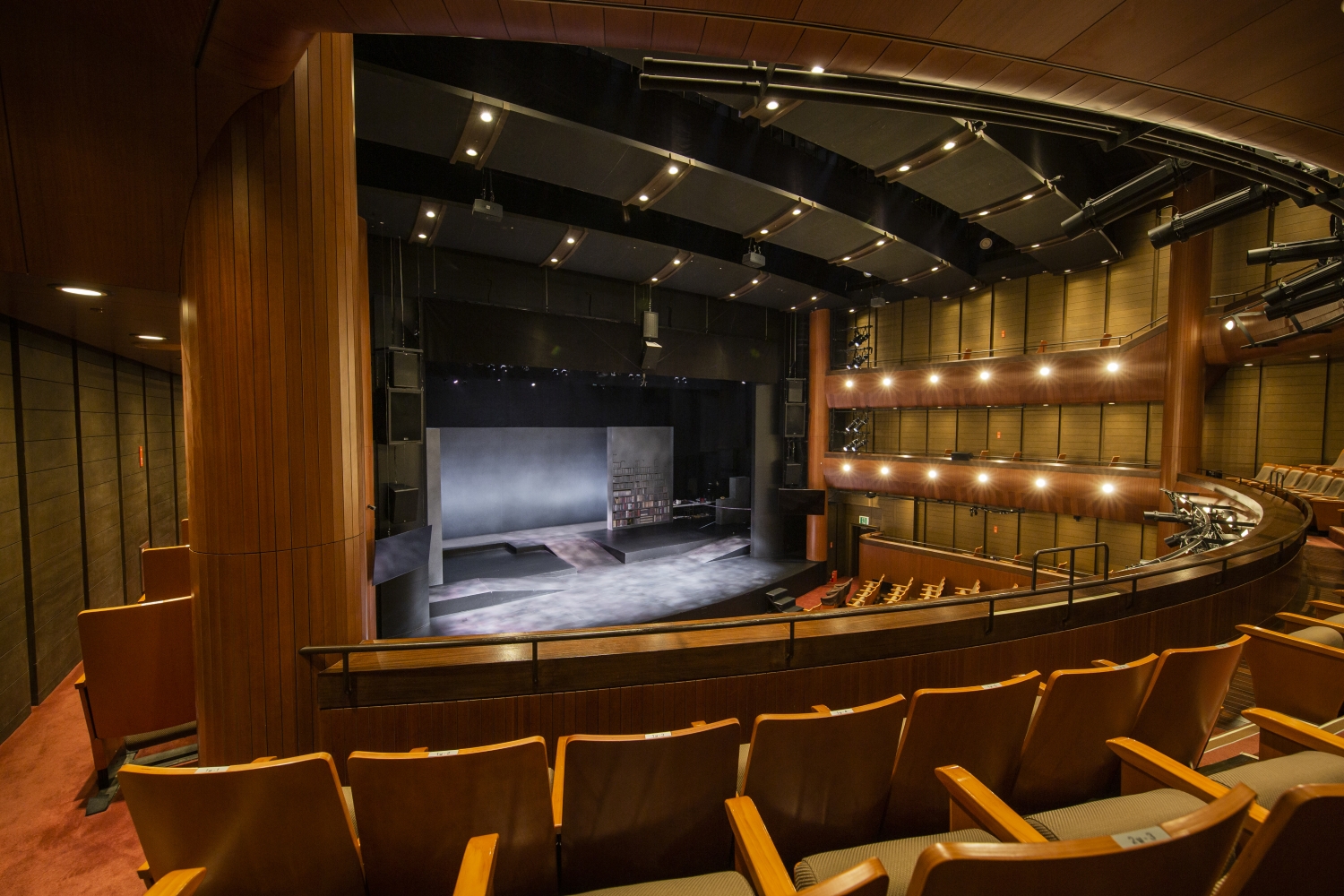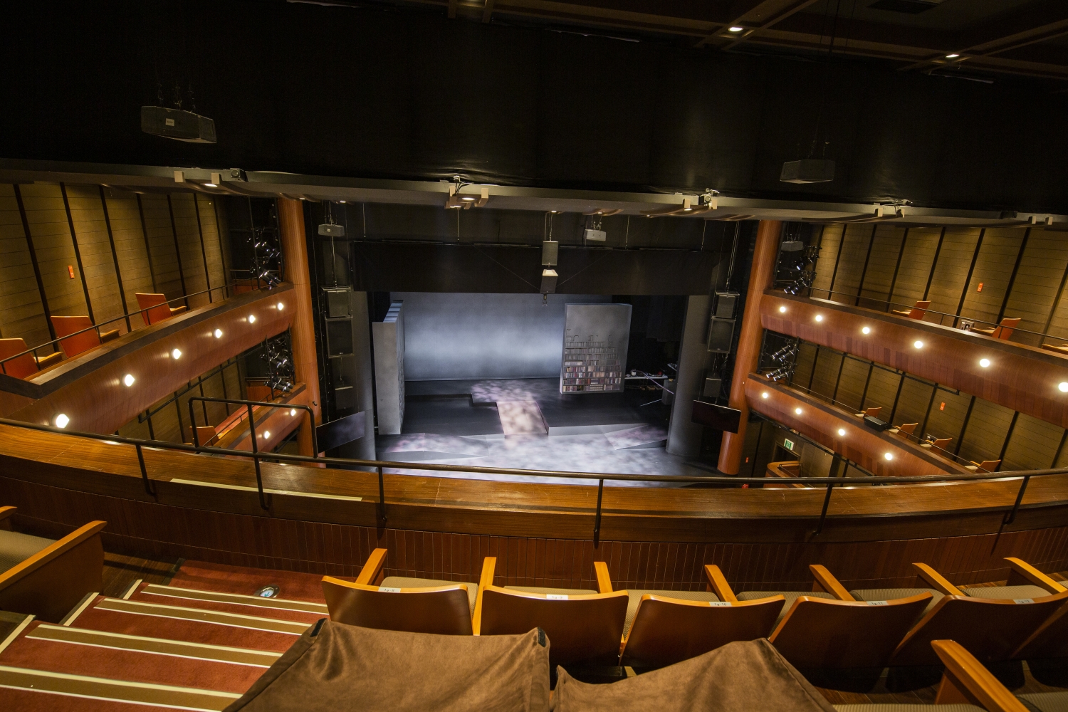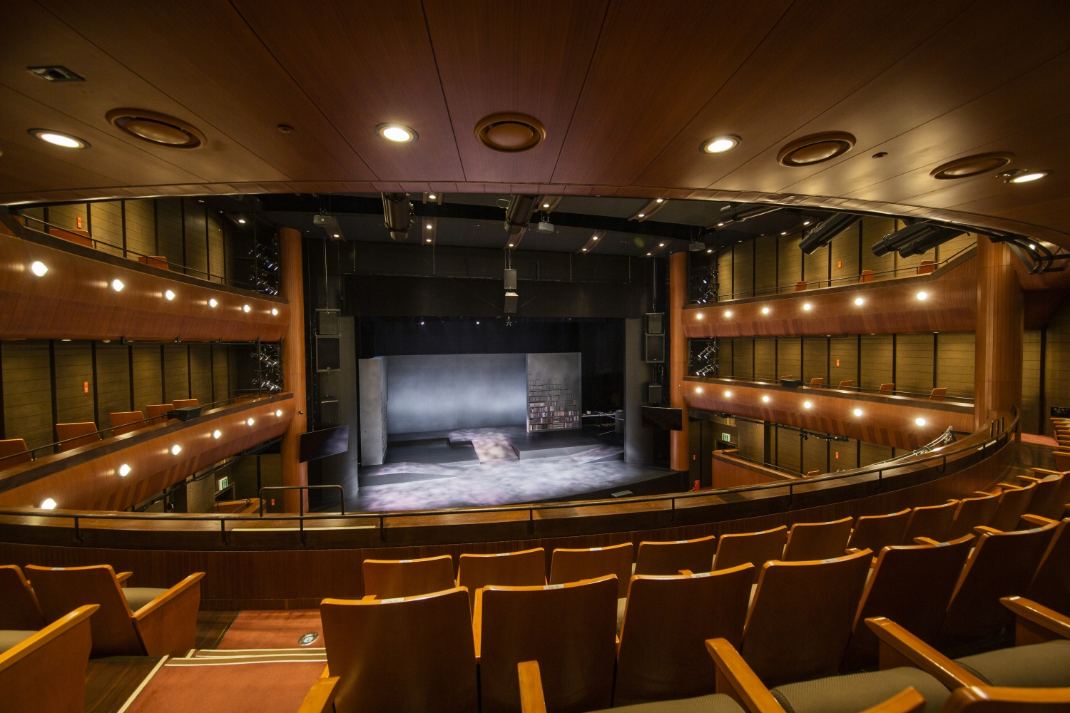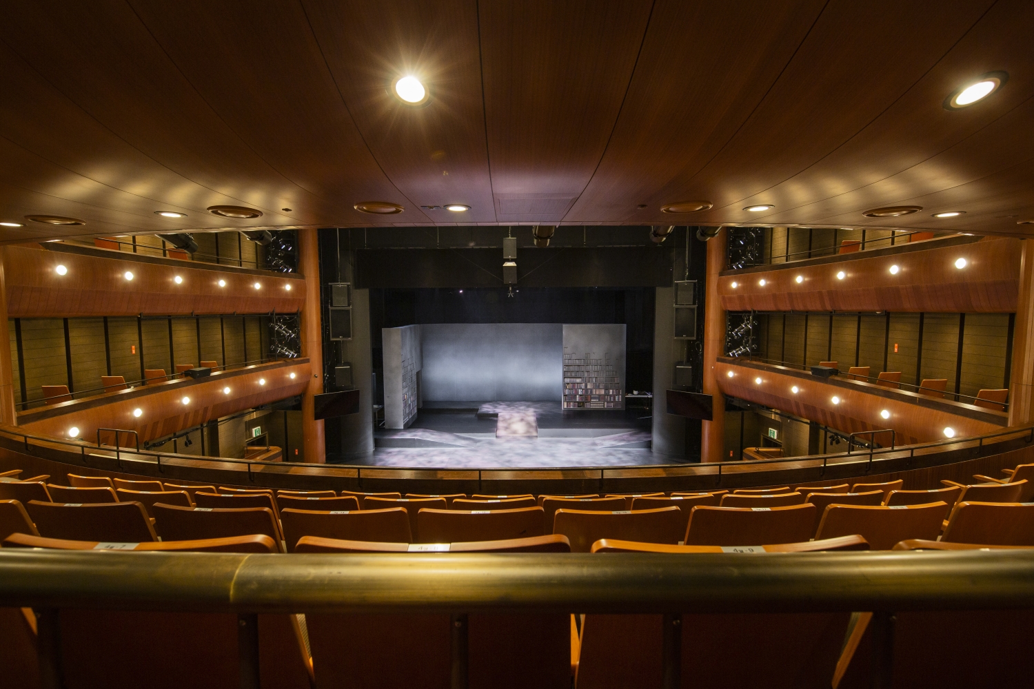 - 본 사진은 2019 <알리바이 연대기>(무대디자인 서지영) 무대를 촬영한 사진이며, 무대세트에 따라 시야가 달라질 수 있습니다.