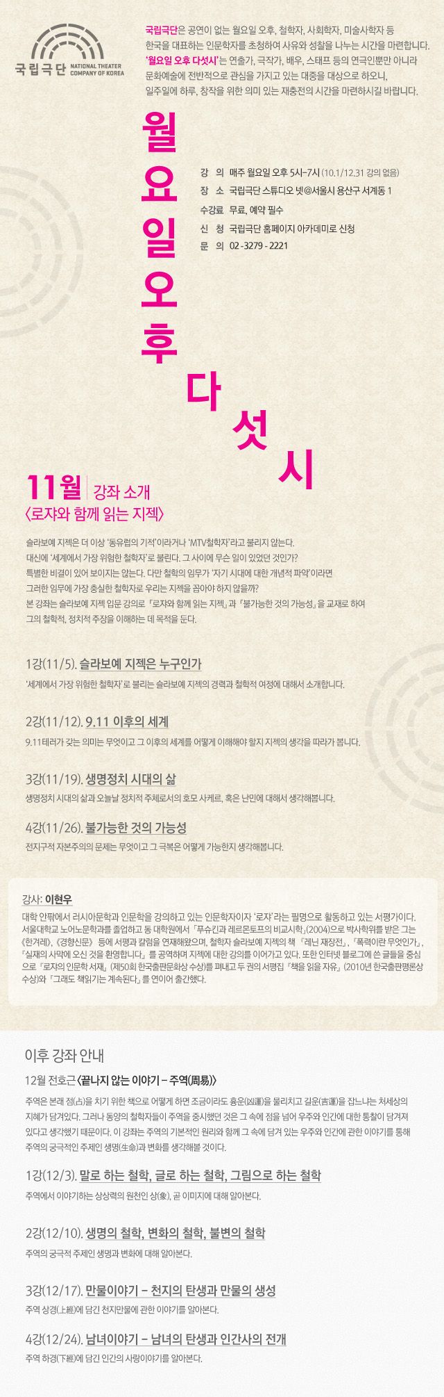 월요일 오후 다섯시 : 11월 강좌 <로쟈와 함께 읽는