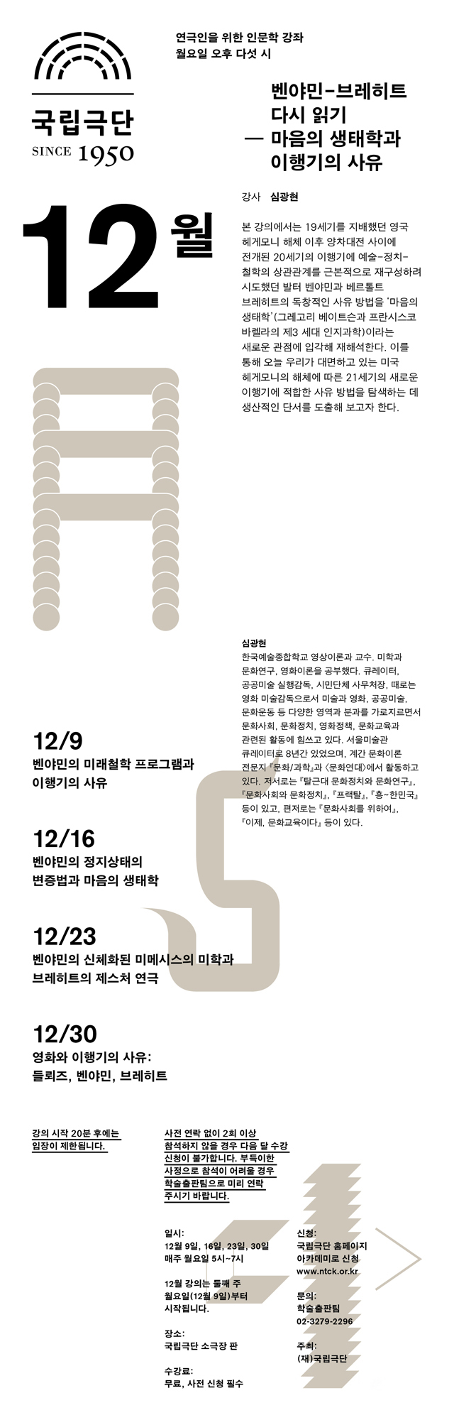 월요일 오후 다섯 시: 12월 강좌_ 심광현<벤야민-브레