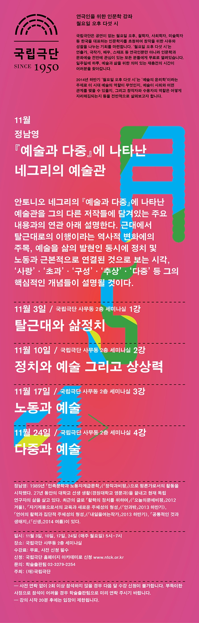 월요일 오후 다섯 시: 11월 강좌_정남영 <『예술과 다
