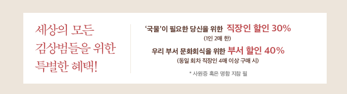 동일 회차 직장인 4매 이상 구매 시 전원 사원증 혹은 명함 지참 필 |