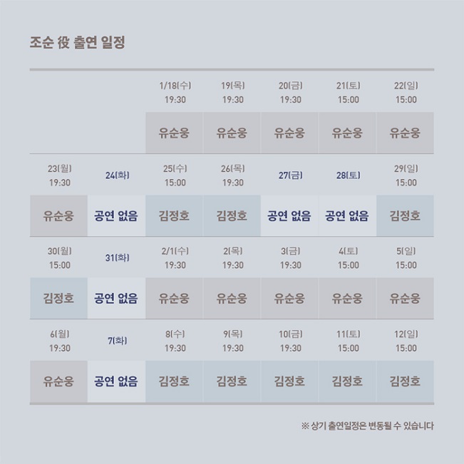 ※ 1.27(금), 1.28(토) 공연 없음 -