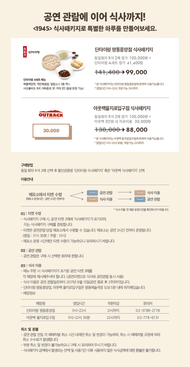 동일회차 R석 2매 + 딘타이펑 명동중앙점 A세트 |