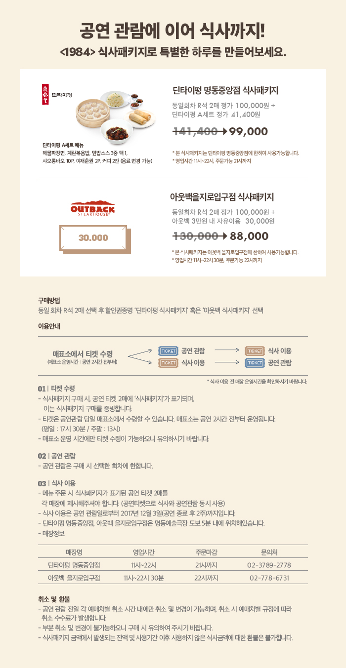 R석 1매+<1984>도서(민음사/정가9,500원) / 130매 한정 |