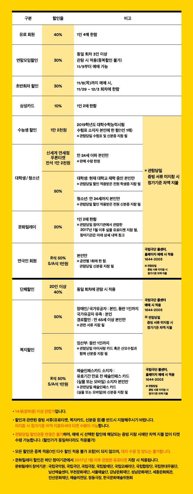 국립극단 콜센터, 홈페이지 예매 시 적용 T.1644-2003