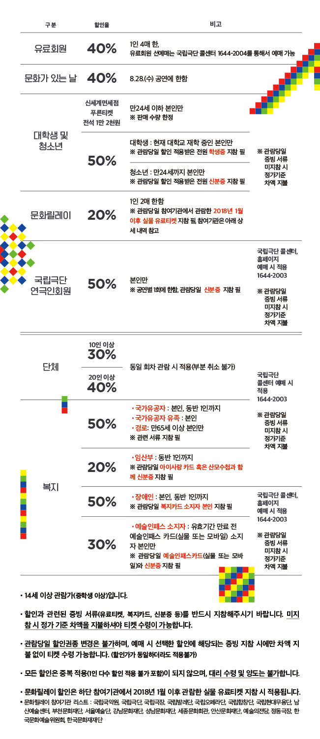 국립극단 콜센터, 홈페이지 예매 시 적용 1644-2003